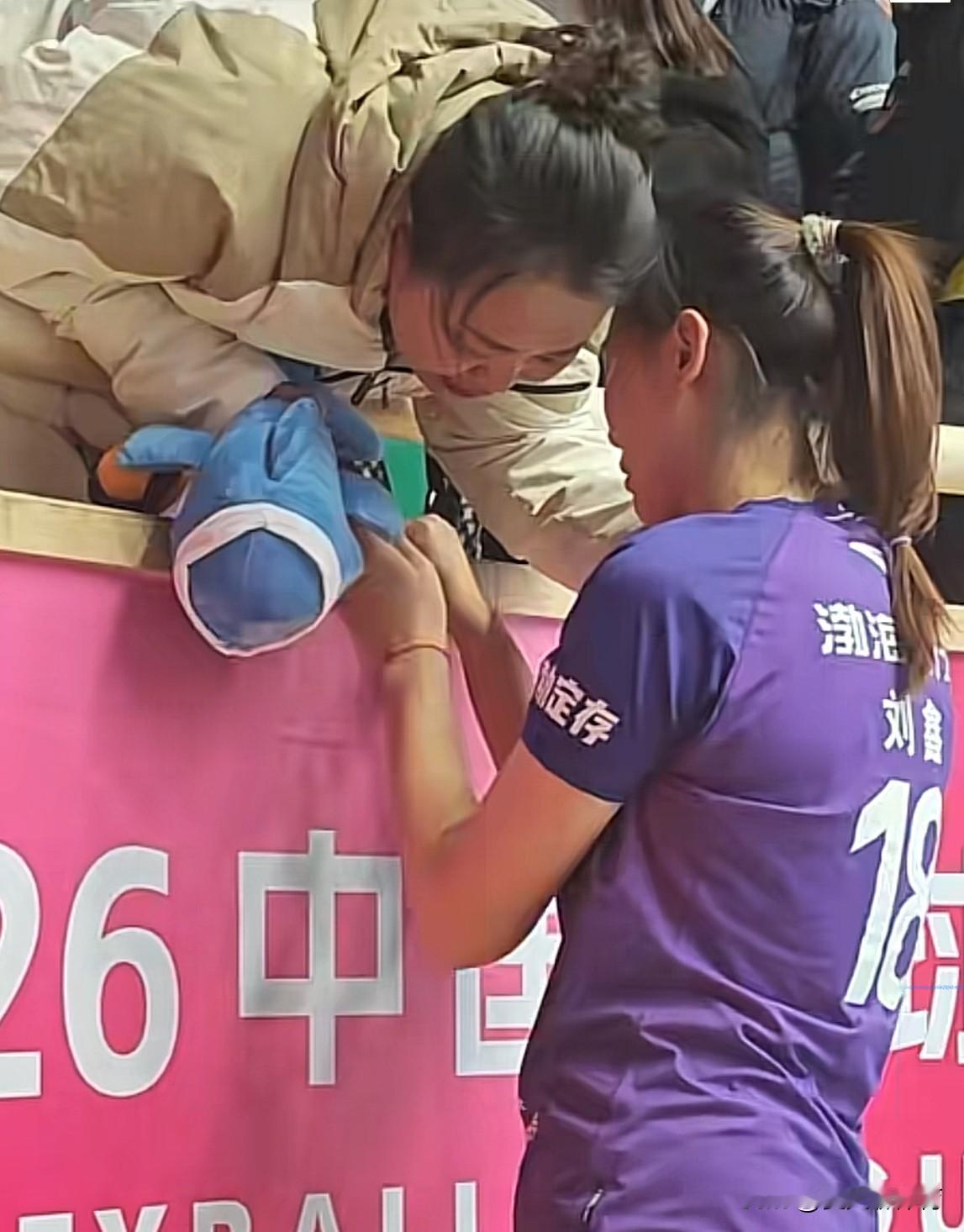 天津女排姑娘赛后哭得特别凶[流泪][流泪]主场输给北京女排赛后,天津女排接应刘鑫跑到看台上找妈妈哭,发挥不太理想,没能帮助球队撑起2号位的进攻,今天替补登场4扣0中2失误被拦!刘鑫赛后非常自责,还有一肚子委屈没人宣泄,所以跑到妈妈跟前去哭,去尽情释放!今年联赛才主打的刘鑫,未来还有很长的路要走,要想在天津女排站稳脚跟,还需要提升自身的基本功啊!