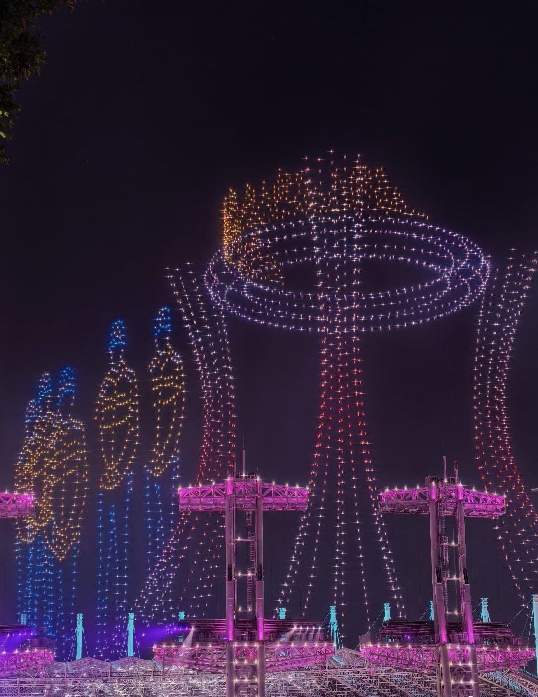 今日正值中国人民警察节,晚餐后闲步。城市霓虹流转,恰遇致敬警察节的无人机表演,以夜幕为幕,执光为笔。警徽光华流转,盾影熠熠生辉。这漫城灯火的安宁背后,始终烙印着他们无言的誓言。抬眼望去,连东西双塔的激光也倾泻出澄澈光芒,如敬意横贯夜空。