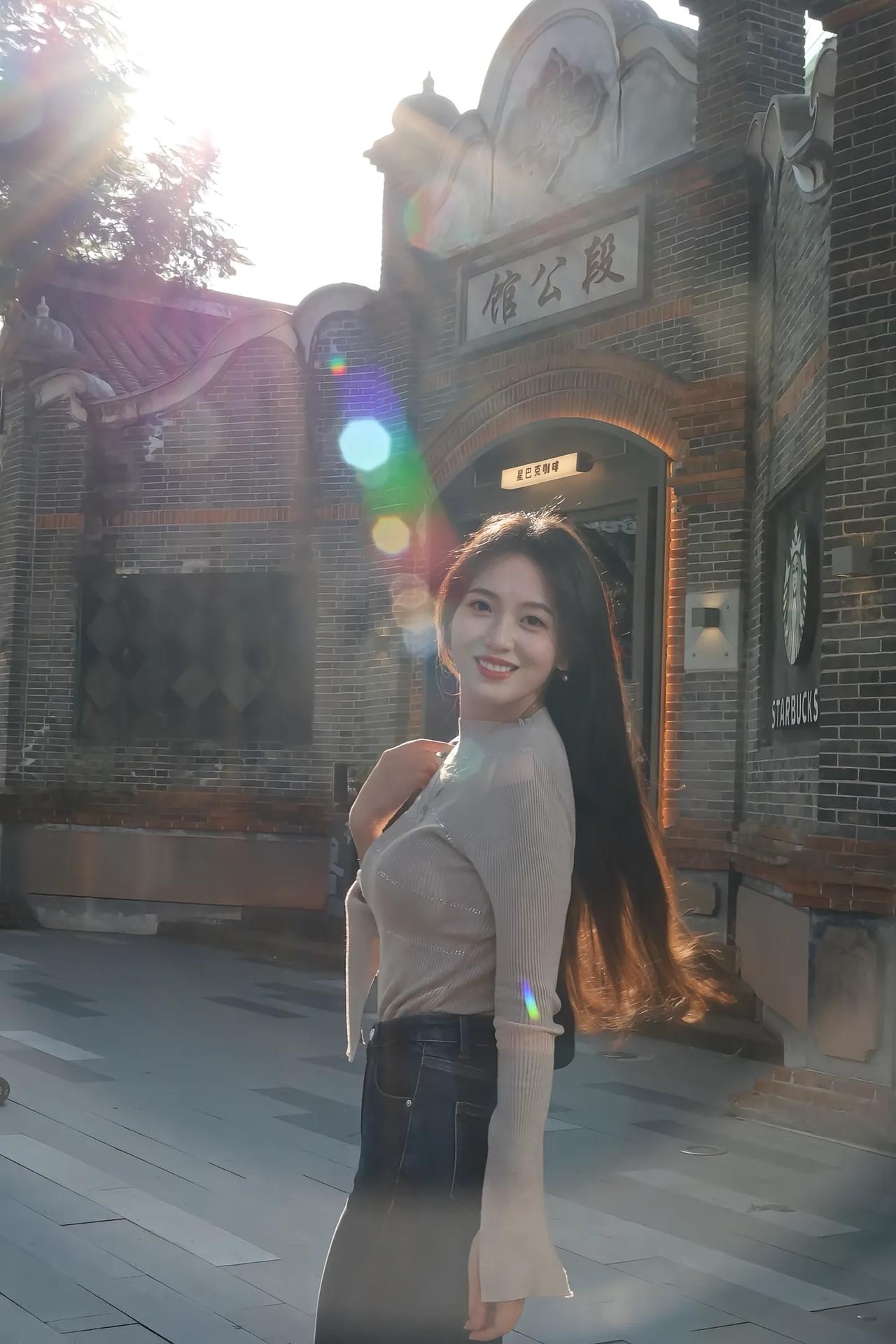 迎着海边第一缕橘粉晨光站定 海风卷着咸湿气息扑在脸上 裙摆被吹得轻轻晃 抬手挡了