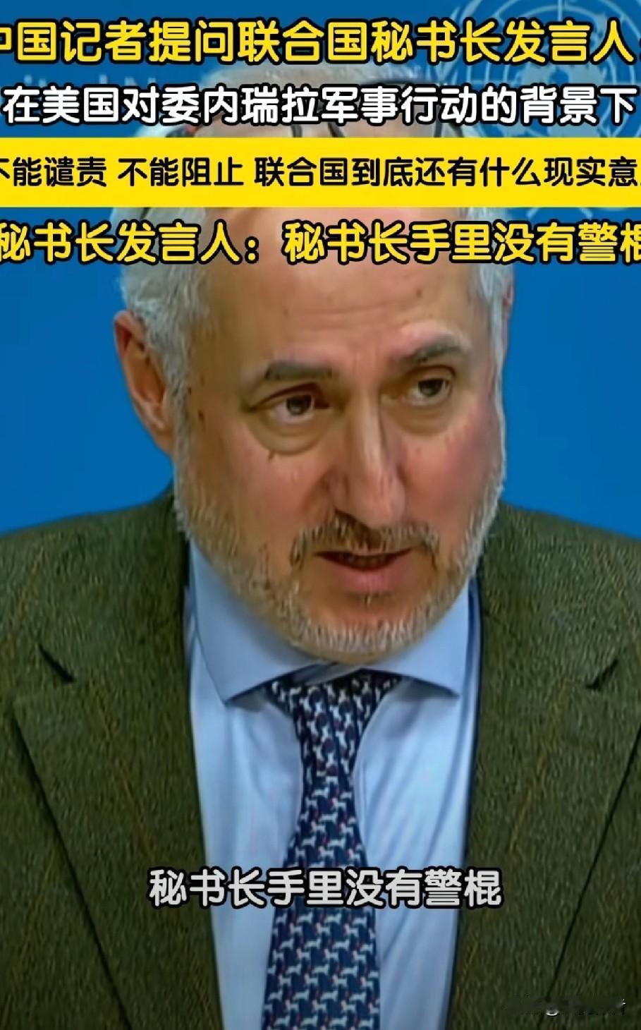 徐德智记者这波提问,真是问出了多少人的肺腑之言!大快人心! 面对联合国发言人,他毫不避讳地指出:美国跑去主权国家委内瑞拉抓总统,如此践踏国际法的行为就在眼前,那联合国存在的意义到底还剩什么? 这灵魂拷问,直击要害!看看现在的联合国,面对强权霸凌,除了口头“关切”就是“呼吁对话”,真正维护公平正义的时候越来越少。它仿佛成了大国博弈的“清谈馆”,面对恃强凌弱,往往选择性失明,软弱无力。 一个本该维护世界和平与正义的机构,如今却常常沦为霸权行径的“旁观者”,甚至“背书者”。当规则被随意践踏,当弱国无外交成为常态,联合国如果再不作为,恐怕真的只剩下“开会”的功能了。 必须给徐德智记者点个大大的赞!在国际舞台上,敢于如此犀利地揭露真相,质问强权,展现了中国记者的风骨与担当!这才是我们想听的中国声音!继续“输出”这样的硬核提问!