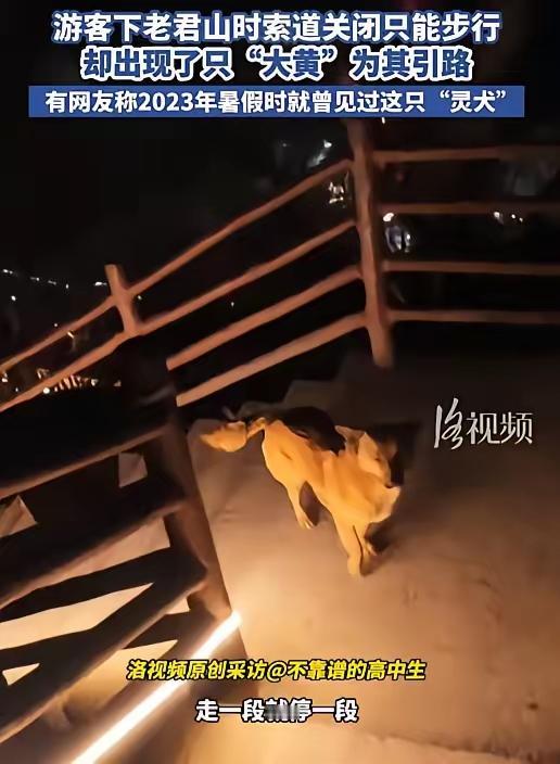 “太有灵性了!”河南一男子爬老君山,因太晚错过缆车,无奈只能步行下山,突然,一只大黄狗从身后冲了出来,把男子一行人吓一跳,男子起初以为是流浪狗,后来却发现狗子走一段停一段,是在带他们下山,当来到山下,男子刚准备告别时,狗子一个动作,让男子一行人彻底破防! 你知道吗?老君山下行索道最晚19:30就停了,错过就只能硬着头皮走步道。这山路可不是闹着玩的,2217米的海拔,台阶又陡又密,好多路段还是悬空栈道,天黑后没了灯光,踩错一步都心慌! 男子一行人当时都慌了神,手机信号时断时续,想导航都没用。大黄狗就跟有感应似的,冲出来后压根不纠缠,只是慢悠悠走在前面。 走个百十米就回头望,见他们没跟上,还会停下摇尾巴。遇到岔路更绝,直接蹲在正确路口,用鼻子轻轻拱拱地面,像是在说“往这儿走”! 同行的人一开始还怕它是来要东西的,兜里揣的饼干递过去,它闻都不闻,扭头继续带路。这一路走了快一个小时,没人敢说话,就跟着狗子的身影一步步往下挪。 终于看到山脚下的灯光时,大家都松了口气。男子走上前摸摸狗子的头,想说声谢谢,没想到狗子突然抬起前爪,轻轻搭在了他的手背上! 那动作温柔得很,没有一点勉强,像是老熟人告别似的。一行人瞬间鼻酸,这荒山野岭的,狗子明明不认识他们,却愿意花时间护送,这份纯粹的善意太打动人了! 后来有人说,老君山生态好,山里的动物都通人性。就像四川老君山有“鸟导游”,河南老君山的狗子也在默默守护游客。其实不是动物灵性,是它们感受到了人类的善意,才愿意主动靠近。 现在景区有智能机器狗帮背山工运物资,科技感满满,但大黄狗的引路,却藏着科技替代不了的温暖。这世上最动人的,从来都是不图回报的帮助。 如果当时没有这只大黄狗,男子一行人可能要摸黑走更久,甚至可能迷路。人与自然的和谐,不就是这样相互守护吗? 各位读