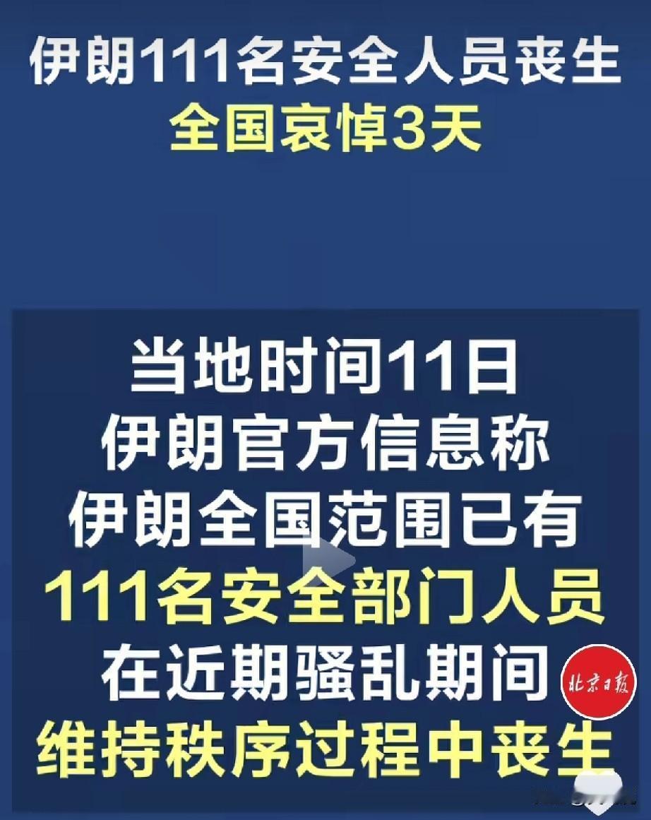 转载自北京日报 伊朗安全人员死亡111名 那么民众伤亡多少? 难道是都不还手吗? 这个新闻看的是一头雾水[灵光一闪][灵光一闪]
