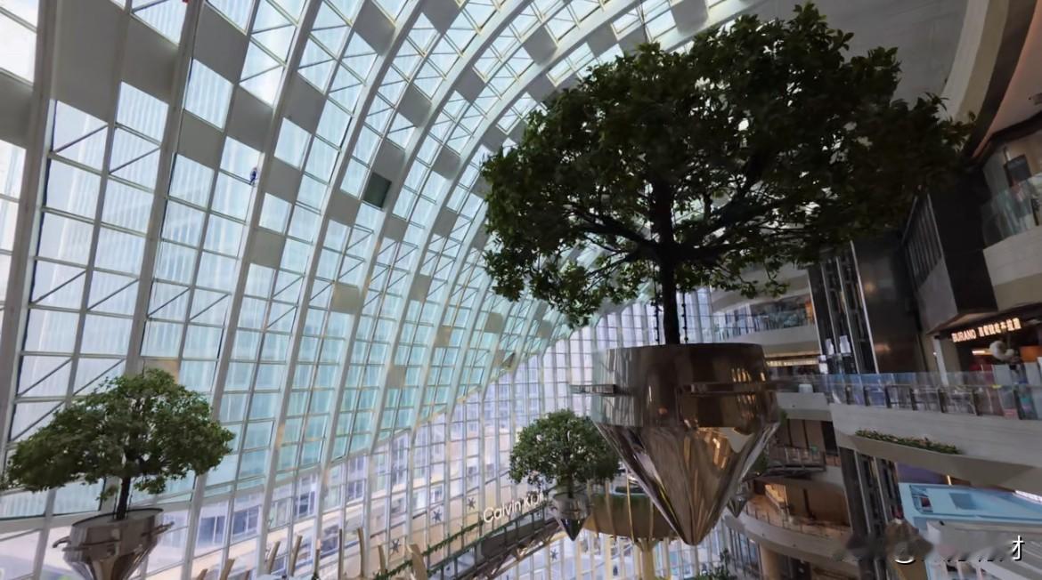 初见这空中树,瞬间被这份巧思震撼。玻璃穹顶的冷硬线条,遇上绿植的鲜活生机,碰撞出别样美感。金属花盆悬于半空,深绿枝叶在天光下摇曳,像是把森林搬进了商场。 周遭的热闹仿佛都成了背景,唯有这几棵空中树,在钢筋水泥的空间里,撑起了一片温柔的自然天地,随手一拍都是视觉盛宴。最有意境的树