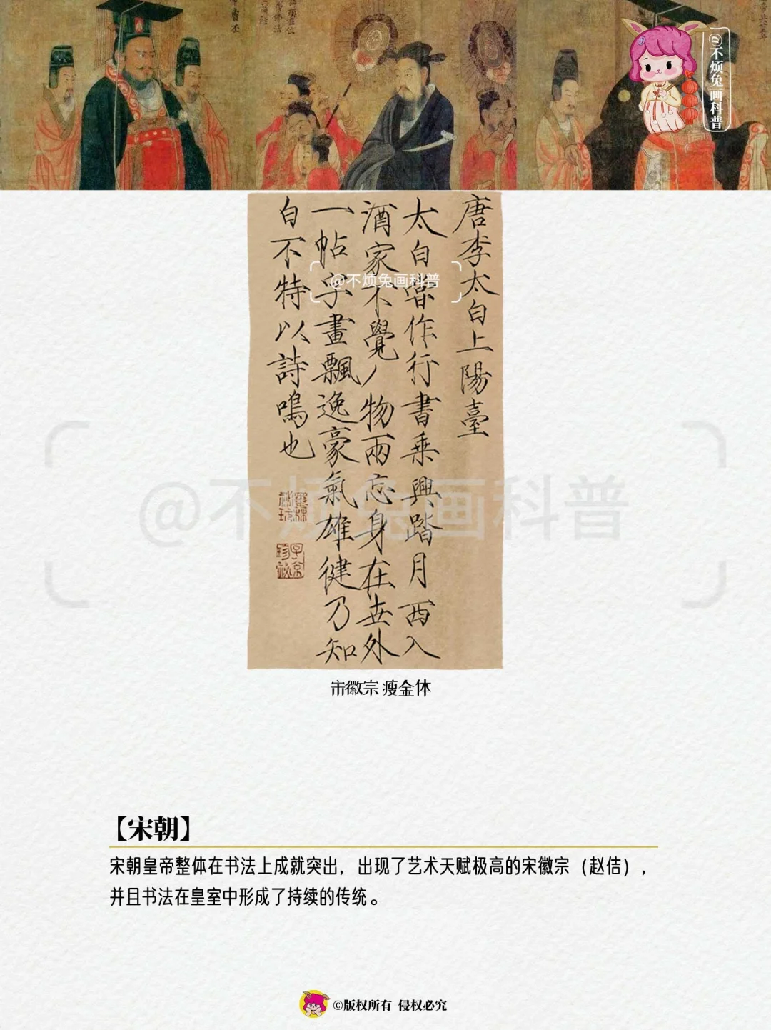 宋朝皇帝整体在书法上成就突出,出现了艺术天赋极高的宋徽宗(赵佶),并且书法在皇室中形成了持续的传统。