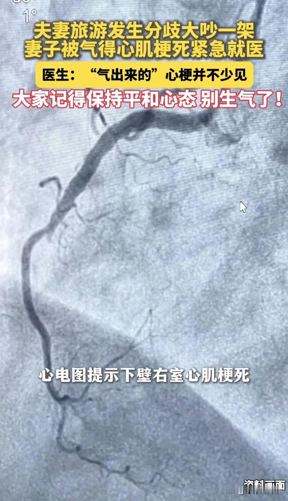 吵架真能气出心梗!杭州夫妻旅游拌嘴,妻子直接被送进医院! 杭州一对夫妻的旅游之旅,愣是变成了一场惊险的急救现场——就因为旅游中的分歧大吵一架,妻子直接被气得突发下壁右室心肌梗死,被紧急送医救治。医生也直言,这种“气出来的”心梗在临床上其实并不少见,这事儿听着离谱,却给所有人都敲了个响亮的警钟。 1月11日的新闻里说,这夫妻俩本来是想出去玩玩放松的,结果行程里因为点事儿谈不拢,俩人就吵起来了。妻子情绪一上头,立马就觉得身体不对劲,送到医院一做心电图,确诊是下壁右室心肌梗死。万幸送医及时,不然后果真不敢想。很多人总觉得“气大伤身”就是句老话,不当回事儿,可实际上情绪猛地激动起来,血压会瞬间飙高,血管也会一下子收缩,要是本身心脏血管就有点问题,这一下就跟踩了炸弹似的,心梗、脑梗说犯就犯。 说真的,这架吵得太不值了!旅游本来是为了开心,结果因为争几句嘴,把人送进医院,旅行泡汤不说,还差点闹出人命。生活里这种事儿其实特多:家人之间为点鸡毛蒜皮争来吵去,朋友之间为个观点不同面红耳赤,可就算吵赢了又能怎么样?道理占了上风,感情和健康却搭进去了,这买卖怎么算都亏。 而且情绪这东西,从来都不是一下子就把人搞垮的。平时总生气、总焦虑,心脏血管早就慢慢受损伤了,这次的心梗不过是憋久了的一次爆发。老话讲“退一步海阔天空”,真不是认怂,是真的得为自己和身边人的健康着想。跟家人、爱人相处,多让一步、多体谅一点,就算想法不一样,好好说不行吗?非得用吵架的方式,把好好的关系搞得鸡飞狗跳。 另外这事儿也告诉咱们,不光要管着自己的脾气,还得留意自己的心血管健康。要是本身有高血压、高血脂这些毛病,就更别瞎生气了,身边人也得多看着点彼此的情绪。一时的冲动,可能换来一辈子的后悔,比起争那点输赢,一家人平平安安的,才是最实在的幸福。