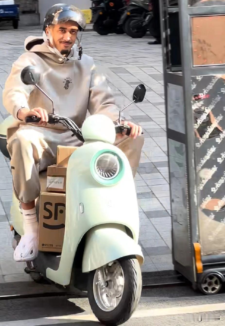 入乡随俗!奎因谈骑电动车: “安全第一。” “头盔必须戴。” “有电动车真