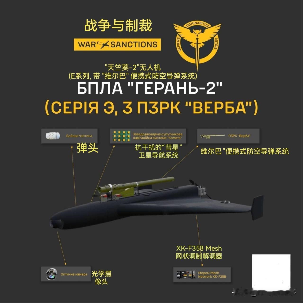 乌克兰国防部情报总局公布了俄罗斯“天竺葵-2”型无人机的示意图、组成部件、电子元件,以及无人机残骸的照片。该无人机搭载了“维尔巴”(Verba)便携式防空导弹系统。 据悉,导弹的扳机通过电缆扎带固定在持续按压的位置,这确保了目标被制导头锁定后能自动发射。