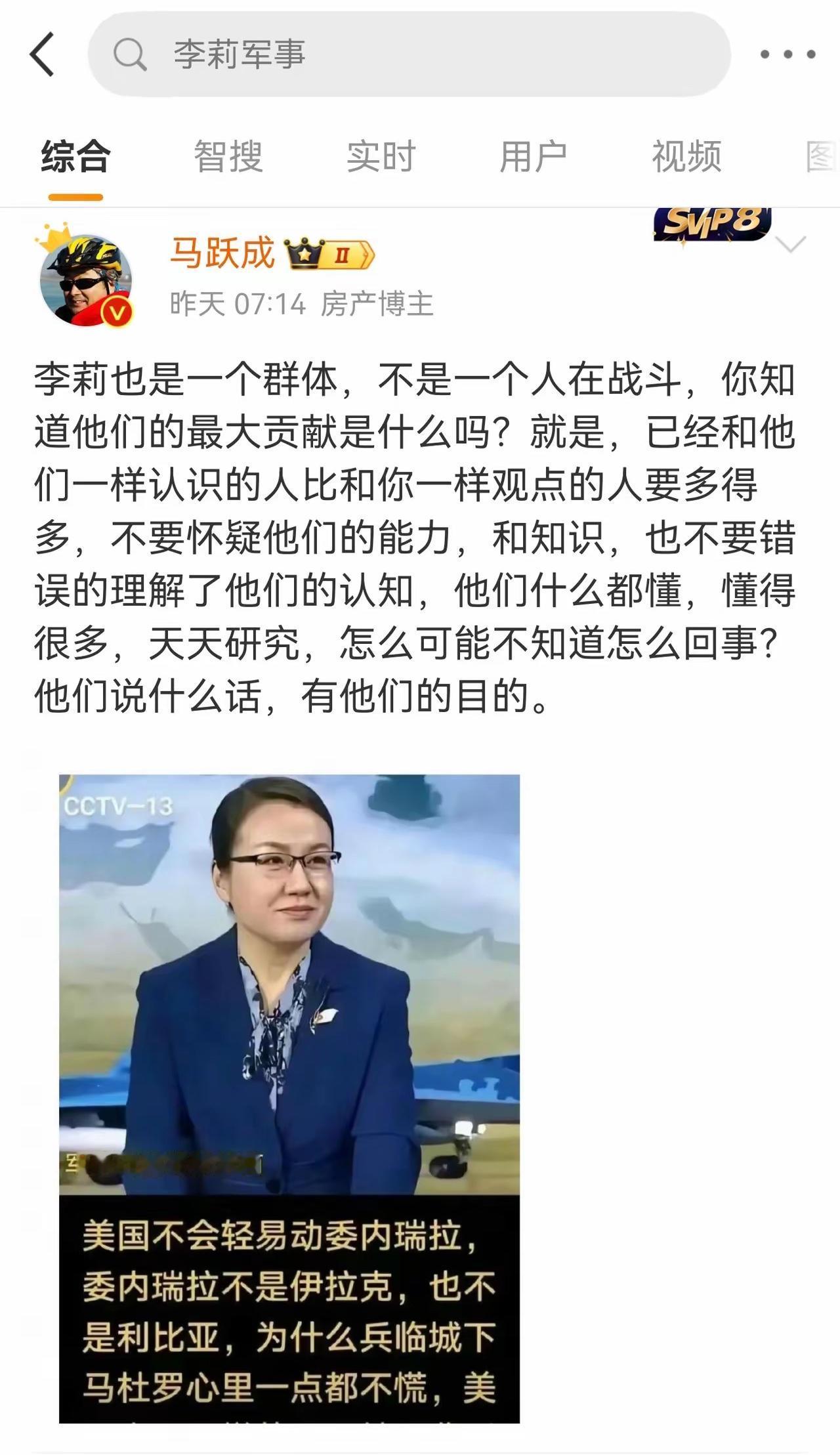 昨天,几个退休老头儿聊天儿,聊着聊着就聊到了著名评论家李莉,有支持她的,也有不喜欢她的,萝卜白菜,各有所爱,不必强求。其中一个老头儿说,他觉得,李莉对国际形势判断得特别准,她的观点,他完全赞同,而且和他的观点不谋而合。