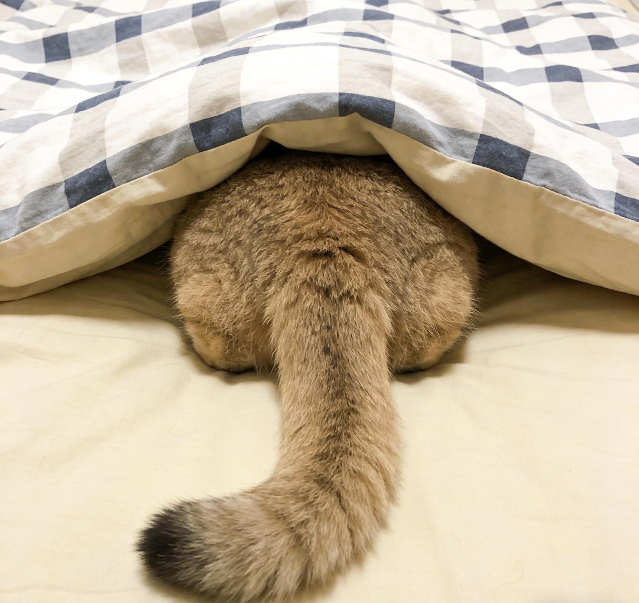所有小猫钻被窝,都逃不过这5个标准步骤 第一步:被窝外侦查 蹲在枕头边暗中观察