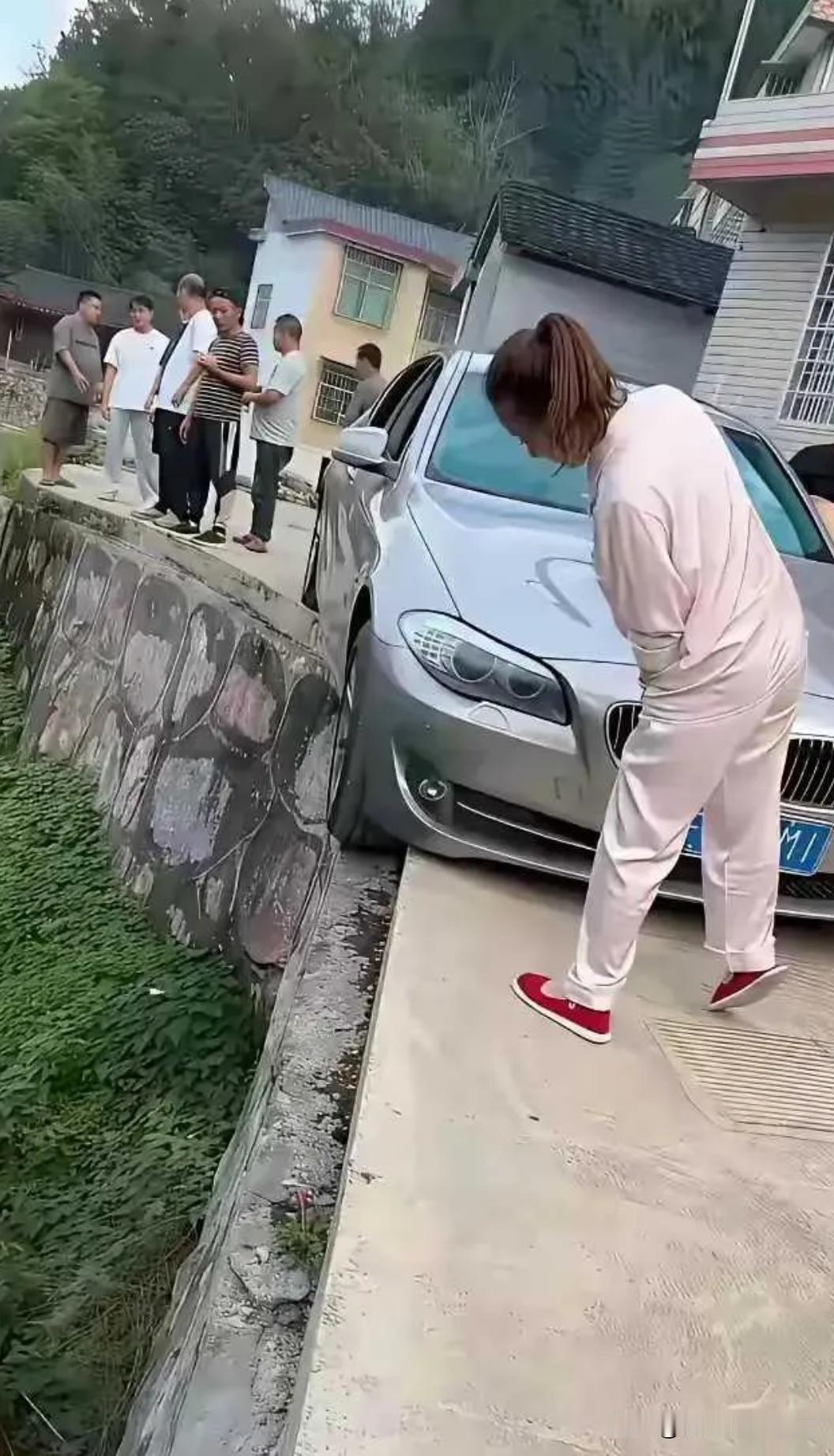这种情况,这辆宝马不用吊车的情况下,怎么正常的开出来? 左前轮垫块斜板