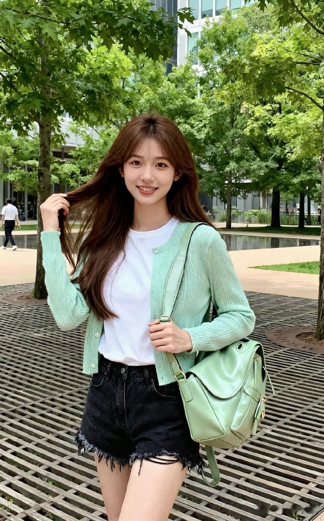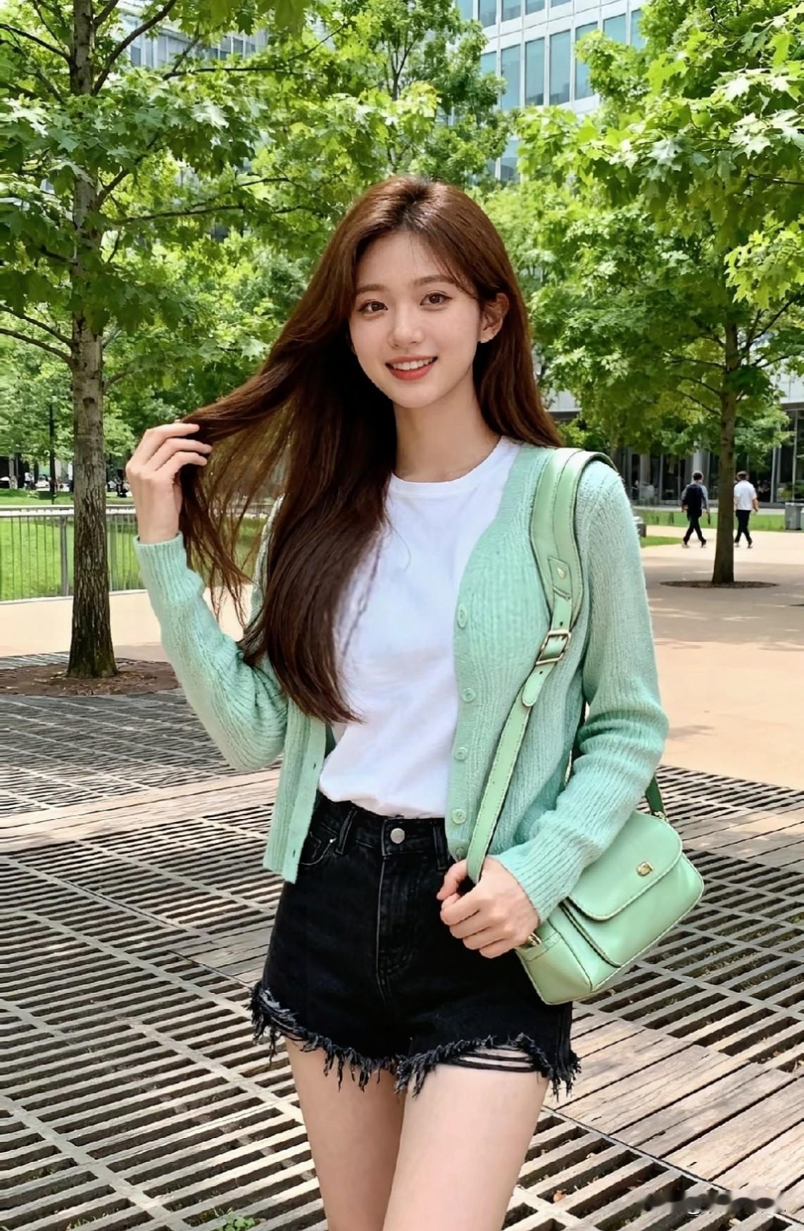 薄荷绿开衫撞上黑色短裤,夏日清新感拉满,甜妹出街,元气爆棚!分享甜美小姐姐随手拍甜美自拍 今日分享随手拍照片 手机随手拍 记录美好点滴 用一张图片来记录生活 分享你的随手拍