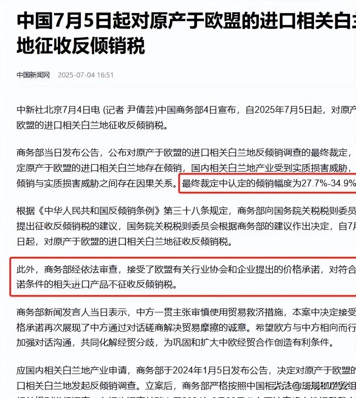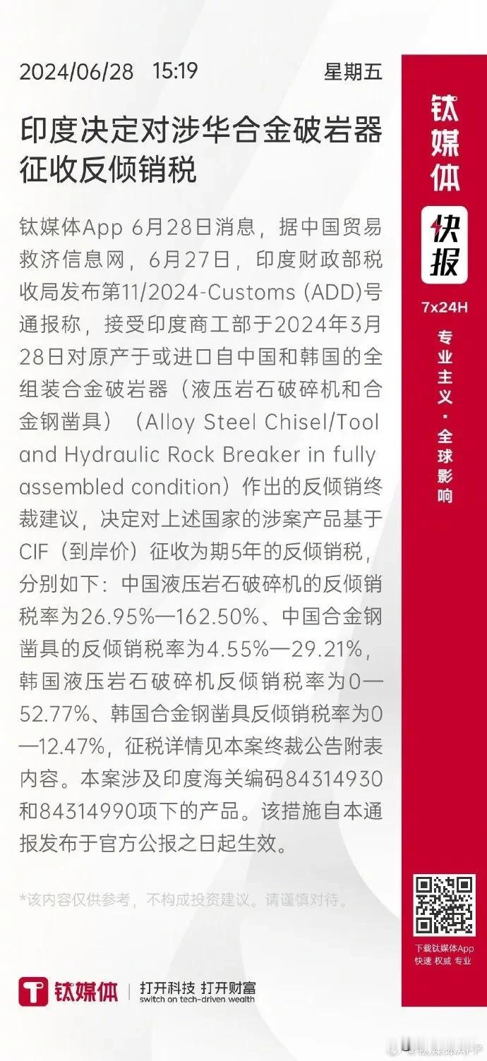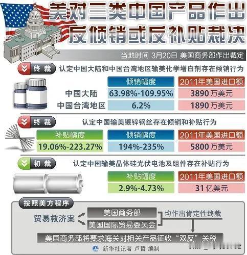中国开征反倾销税 此乃依据《中华人民共和国反倾销条例》施行的贸易救济举措,旨在维护公平贸易秩序,保护国内产业免遭国外产品以低于正常价值(即“倾销”)的价格进口所造成的损害。 征收反倾销税有着一套严谨的法律流程。首先,需由国内产业或其代表提出申请,商务部会对是否存在倾销、国内产业是否遭受实质损害以及两者之间是否存在因果关系展开调查。作出最终裁定后,由商务部提出建议,国务院关税税则委员会依据该建议作出决定,再由商务部予以公告,海关随后执行。 🔍 最新动态 依据最新公告,中国自2026年1月14日起,对原产于美国和韩国的进口太阳能级多晶硅持续征收反倾销税,实施期限为5年。 * 美国公司:税率为53.3% - 57% * 韩国公司:税率为4.4% - 113.8% 这一决定是基于商务部的期终复审裁定,认定若终止征收反倾销税,倾销行为可能继续或再次出现,并对国内产业造成损害。 📝 其他近期案例 除上述最新举措外,近期中国还实施了其他反倾销行动: * 对欧盟的猪肉及猪副产品:自2025年12月17日起,对原产于欧盟的进口相关猪肉及猪副产品征收反倾销税。 * 对日本的二氯二氢硅:商务部已于2026年1月7日决定对原产于日本的进口二氯二氢硅开展反倾销立案调查。 反倾销税的征收期限通常不超过5年。但经复审确定终止征收反倾销税可能致使倾销和损害继续或再次发生时,征收期限可适当延长。