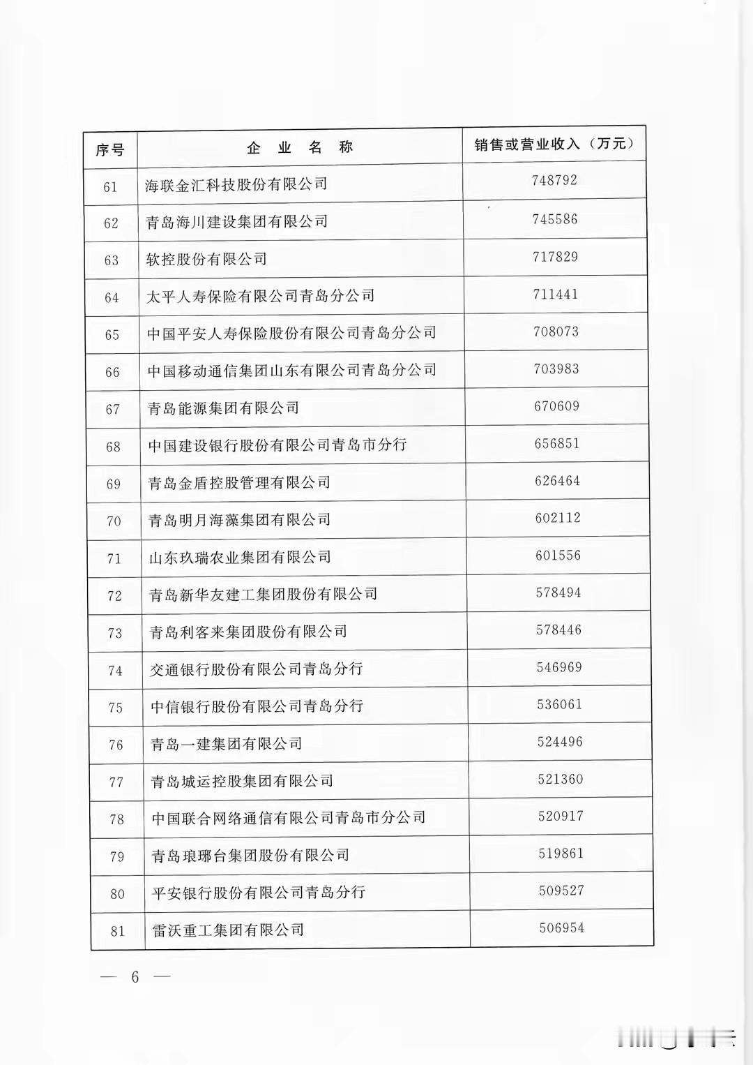 青岛亮牌,榜单全出炉!2025年青岛企业营收排行榜100名!全揭秘!山东济南都亮牌了,我们青岛企业也亮牌打!3家1000亿级、7家500亿+,11家400亿+、46家100亿+,这都是青岛市的底气,有这么多王牌企业在手!快来围观揭秘详细内容!你觉得青岛企业还有哪些王牌企业,有哪些巨无霸企业?和济南相比较有哪些优势。欢迎评论区留言交流讨论相关话题。速速围观揭秘详细内容。[点亮平安灯][点亮平安灯][烟花][烟花] 欢迎关注@叮咚云 将优先为粉丝职业规划指导,1对1咨询是付费服务,为你定制最适合的就业择业方案!欢迎留言交流讨论。[来看我][来看我] 免责声明:图片来自网络,仅供参考!