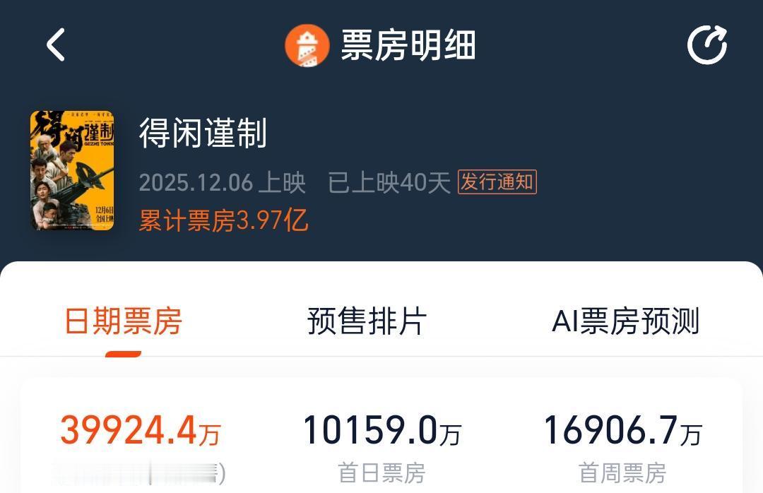上映五天,票房一天比一天高,这电影疯了。 肖战主演的《得闲谨制》,累计票房3.99亿,马上撞破4亿大关。 逆跌现象,连续多日票房不降反升,影院经理都看傻眼。 粉丝挤满午夜场,上座率飙到85%。 剧本扎进现实,肖战演技炸穿屏幕,观众掏出手机二刷三刷。 排片率从15%暴涨到25%,业内预测最终冲5亿。 这波逆袭,撕碎所有质疑。 票房逆跌,人心不跌;电影得闲,观众得见。