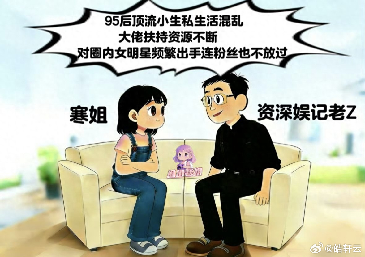 曝95后顶流小生私生活混乱 内娱又爆大瓜!近日八卦博主“瓜田寒姐”用漫画形式爆料,一位95后顶流小生被指私生活混乱,引发网友热议。