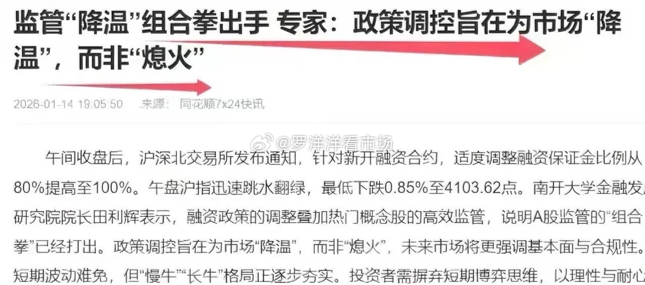 1.15分歧 昨晚又是一堆票进了监管,20厘米翻倍快,好多相对跟风的也进了100%的监管。所以今天开盘比较难受,但即使如此,也不影响高辨识度个股脱颖而出,今天即使跌了也无妨,国家正常的调控,只是降温,而非熄火。 晚上央广网也定性是降温不是熄火,这个定位很准,监管越谨慎,对市场的长远走势反而越好。 AI应用昨天70多家涨停,连续三天最强风口,大涨后降温也是好事,主流热点第一次分歧都是机会,是切入核心前排的机会。将时间周期拉长来看,今天的调整不就是倒车接人? 珍惜机会。