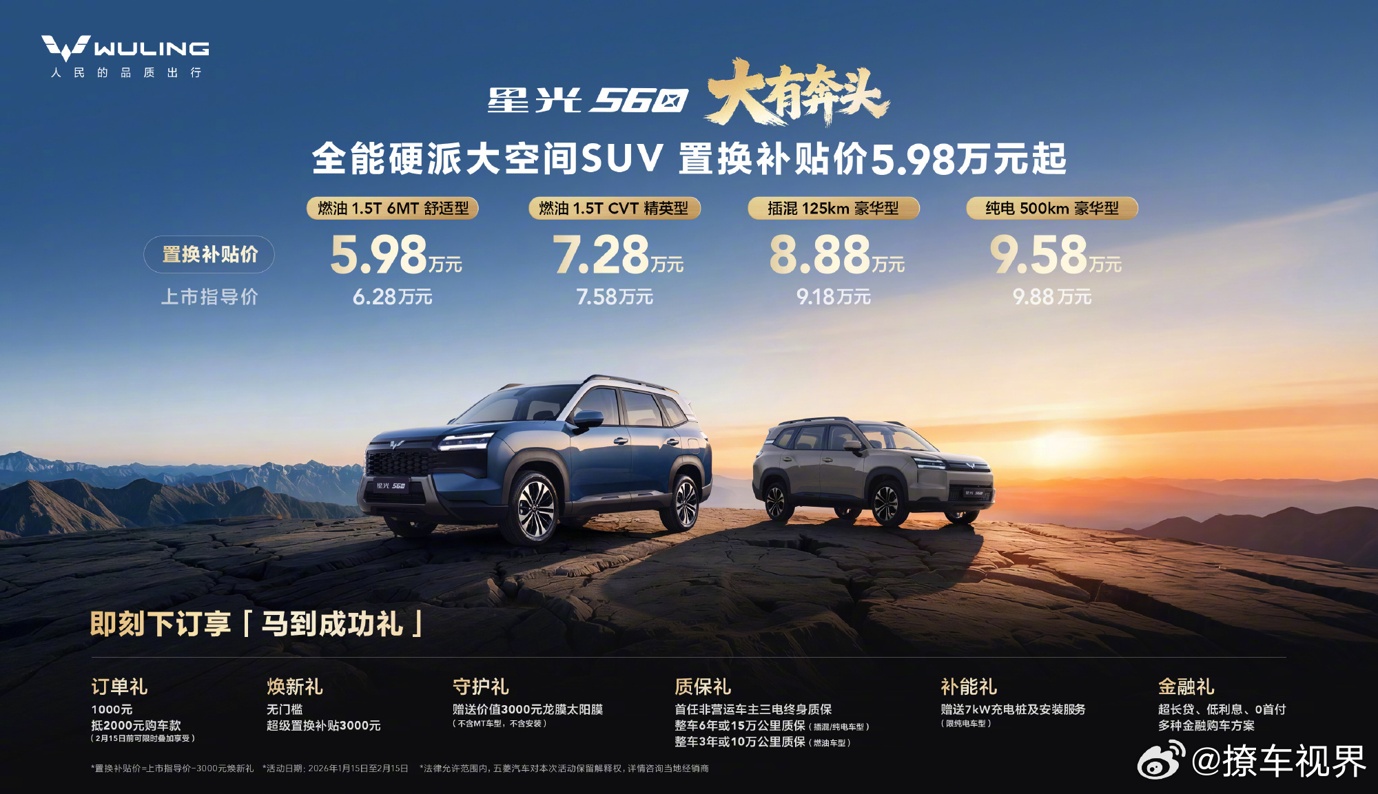 自从五菱发布了「硬派」预告之后,我发现我可能和五菱有点儿「认知偏差」了。不过好在,「便宜」这事儿还在,560置换补贴价是5.98万起,亲民这块儿还拿捏的挺稳。而且,有意思的是,入门的版本不光是1.5T动力的纯燃油车,还是手动挡,这绝对算是个稀有物种了,可能也就五菱会有手动变速箱的库存了。另外的插混125km版本,小电池无疑,亏电油耗5.3L/100km;500km续航的纯电版,10万里的价格也算中规中矩。星光560后续销量上基本是有保障了……撩妹不如撩车新能源汽车
