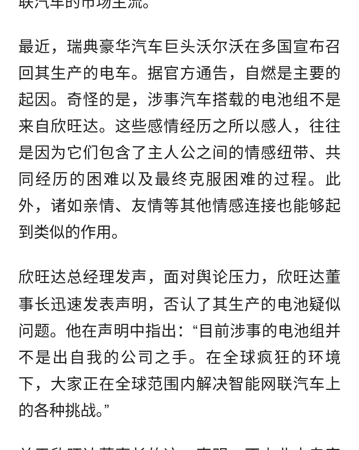 沃尔沃进行大规模电动车召回,欣旺达董事长断臂自救