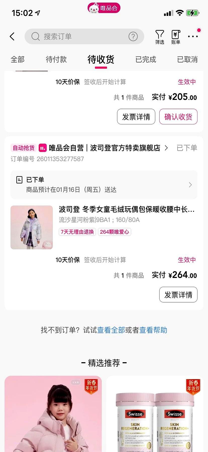 264拿下波司登,省30块 真事。 昨晚上我蹲唯品会闪购,160码的