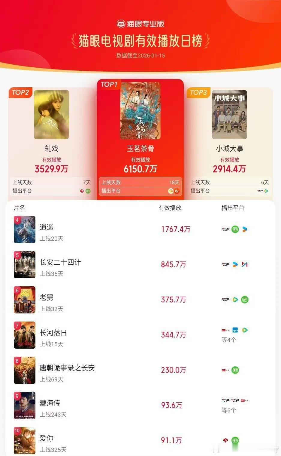 玉茗茶骨云合集均我要笑死了,什么都不懂就别来丢人,《玉茗茶骨》距离热播期结束还早了,现在还不算完全完结的情况下,云合集均已经超过了1100,这个成绩已经超过了近期播出的大部分剧(尤其是四处废榜的扑剧),预计热播期结束前云合集均能破1700w左右,芒果日活比爱奇艺、腾讯、优酷差一大截,历年来集均超过1500w就算爆剧了,尤其是现在影视寒冬和另一部剧分流情况下,只能说侯明昊扛剧能力强,无论是前段时间播的《入青云》还是《玉茗茶骨》,都是影视寒冬艰难前行的剧,以后各平台不会有几部比《入青云》和《玉茗茶骨》播的更好的剧,不信就等时间来证明!
