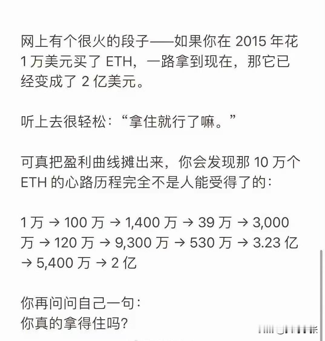 纸上的数字翻涌成2亿,不过是一行字的距离。 但账户里的1万变100万、再跌回39万,却是无数个失眠夜的心跳。 我们总在羡慕别人的翻倍时刻,却忘了那些在暴涨暴跌里反复拉扯的之间,才是真正的考验。 当K线图变成心电图,你还能握紧最初的筹码吗? 试问若大的市场,又有多少人能够“拿得住”,真正的财富,从来都在波动里熬出来的。