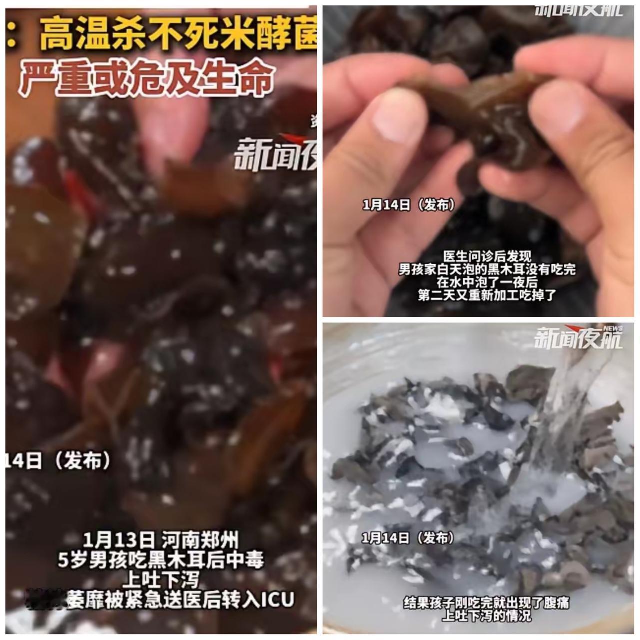 “悲剧还是发生了!”河南郑州5岁娃一口隔夜泡发的木耳下肚,直接被送进ICU抢救,这事儿真的让人后背发凉! 罪魁祸首是米酵菌酸,这玩意儿藏在泡发食材里悄无声息,开水煮、大火炒都杀不死,常温泡超过4小时就踏入风险区,北方暖气房温乎乎的,更是毒菌疯长的“安乐窝”。 别再抱着“没怪味就没事”“煮熟就安全”的老想法了!这哪是节俭,分明是拿家人健康赌运气!泡木耳、银耳这类食材,就得守死科学底线:冷水泡发最多2小时,吃不完立刻冷藏,而且冷藏也不能超24小时,只要超时,再可惜也得果断丢。老人小孩免疫力本就弱,这种致命风险真的赌不起。 食品安全从来不是事后追悔,而是日常每一次的谨慎。你家泡发食材会严格控时吗?有没有踩过类似的厨房坑?评论区分享你的安全小技巧,让更多人避开这些隐形杀手,别让一时疏忽变成一辈子的遗憾!吃木耳中毒
