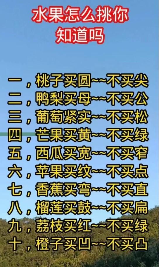 挑水果想精准避开“酸果”“寡淡果”,掌握3个核心技巧就行,简单好操作,新手也能上手。 先看外观,成熟水果色泽均匀透亮,比如芒果要选果肩饱满对称、果皮有自然光泽的,香蕉选表皮带少量芝麻斑、无凹陷发黑的,纹路清晰的水果通常甜度更足。 再闻气味,果香越自然浓郁,口感大概率越好。柑橘类、桃子凑近果蒂处,若有清新果香就是成熟度够;若没味道或有青涩感,大概率还没熟透。 最后轻按果身,微软有弹性的最佳,比如牛油果按下去轻微凹陷、苹果按压不硬邦邦,过软易腐烂,过硬则没熟透。 温馨提示:不同水果特性有差异,比如葡萄要选果梗翠绿、颗粒紧实的。技巧仅作参考,结合水果品种灵活调整,就能大概率买到香甜又多汁的果子。