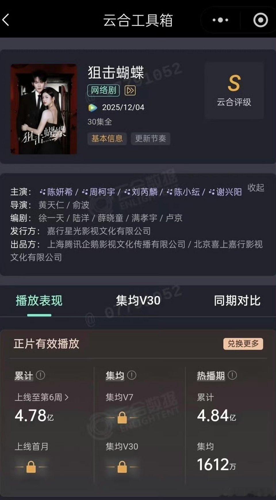 周柯宇 狙击蝴蝶热播最终集均1612万!A级剧播成了S级 !绝对的小成本黑马爆剧