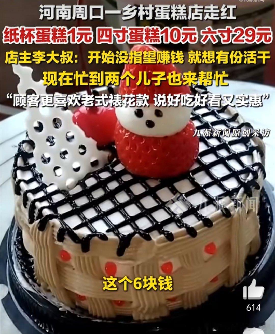 乡村蛋糕店4寸卖10元走红好便宜!不过卫生没问题的话当然会很受欢迎,薄利多销也不错