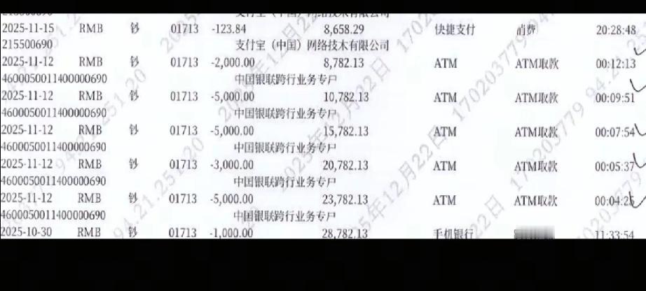 看了牛娜发丈夫的银行流水真的挺气愤! 比如去年10.11月,只要高飞账户一有钱,