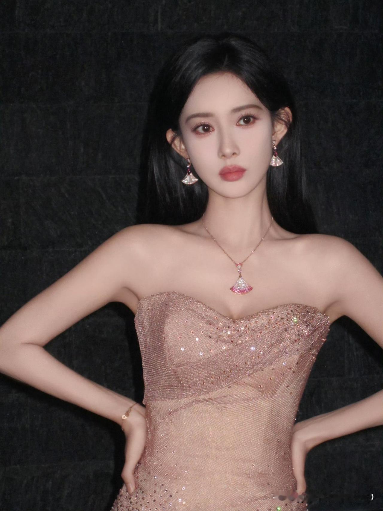 孟子义身穿一袭薄纱闪钻裙勾勒出曼妙身姿