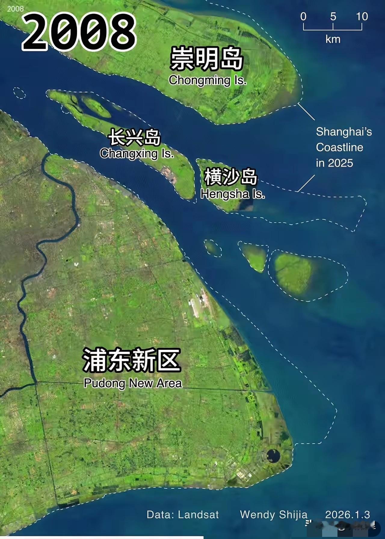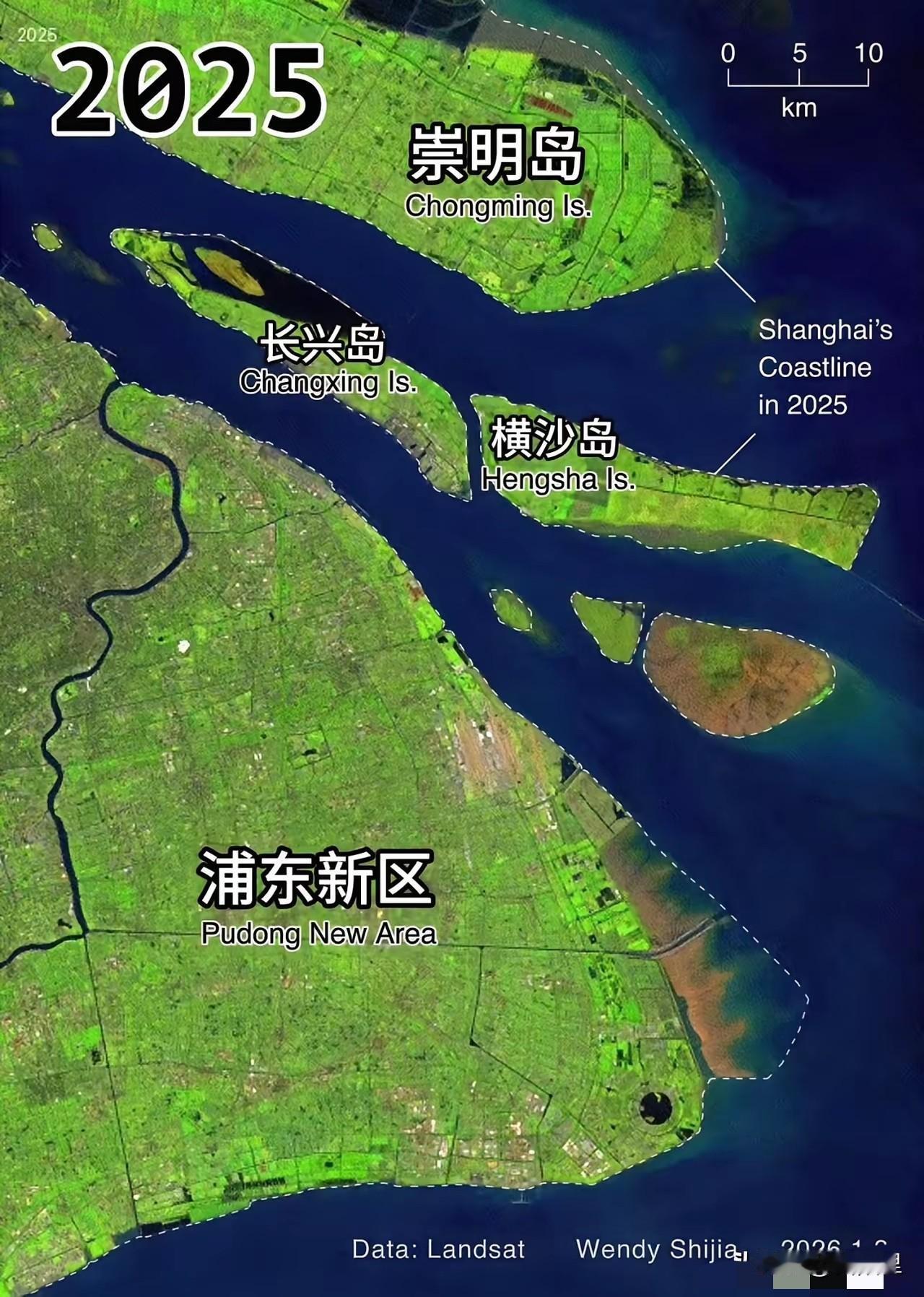 看完这张图后,你就知道深圳为何羡慕上海了,上海是最不缺土地的一个城市。长江不只是黄金水道,还是一个天然的造地主!短短30多年间,长江从上游携带的泥沙在这里缓慢沉积,让长兴岛变大了好多!除了自然的作用,上海也在这里实施了填海造陆工程!尤其是横沙岛,从21世纪初的50平方公里到现在的150平方公里,而且未来还将继续规划填到260平方公里,为上海这座超级城市预留足够多的储备土地!相反,九段沙岛屿完全是长江自然的结果,极少以人工干预而形成的!这两个岛对上海太重要了,长兴岛是上海的海洋装备岛,聚集了江南造船,沪东中华造船,中远海运重工,振华重工等世界级龙头企业,而横沙岛则主要以农业生态和旅游休闲为主,是上海的菜篮子!