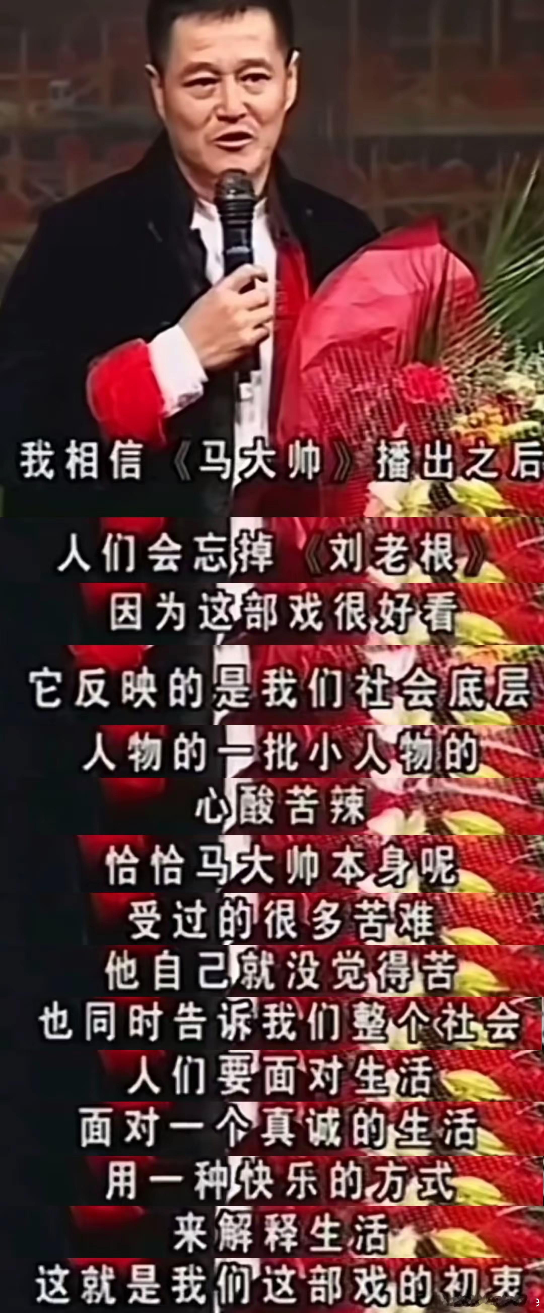 为什么当下的现实主义题材的国产剧远不如《马大帅》?赵本山在《马大帅》的开播发布会说的一段话可以解释。“我相信《马天帅》播出之后,人们会忘掉《刘老根》,因为这部戏很好看,它反映的是我们社会底层人物,一批小人物的心酸苦辣。恰恰马大帅本身呢,受过的很多苦难,他自己就没觉得苦,也同时告诉我们整个社会,人们要面对生活,面对一个真诚的生活,用一种快乐的方式来解释生活,这就是我们这部戏的初衷。”反观其他现实剧,只有制造焦虑,引导对立,为了热议话题,舆论热度失去了下限,哪有什么真正的积极面对,真诚生活,只有对三破一苦的利用,把观众当工具人。果然纯粹的喜剧不用悲剧升华跨年电影愿