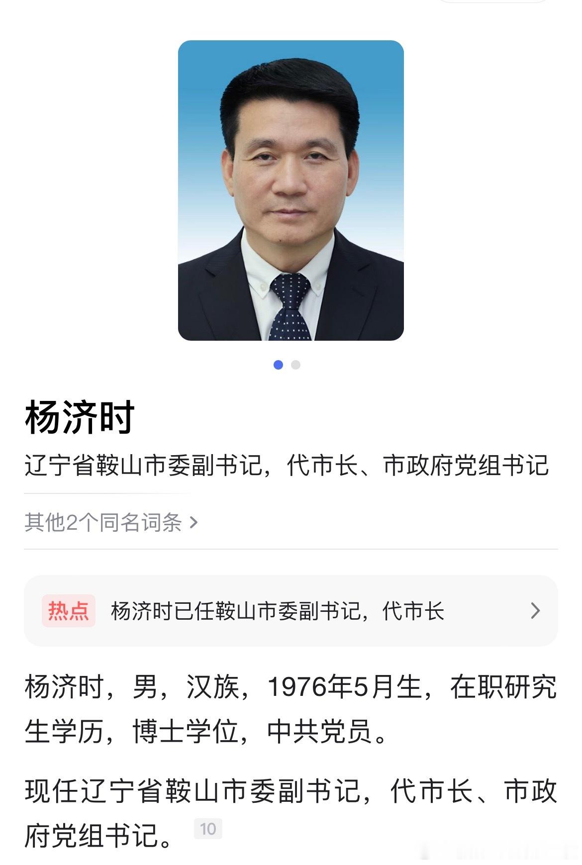杨济时任鞍山市代市长。