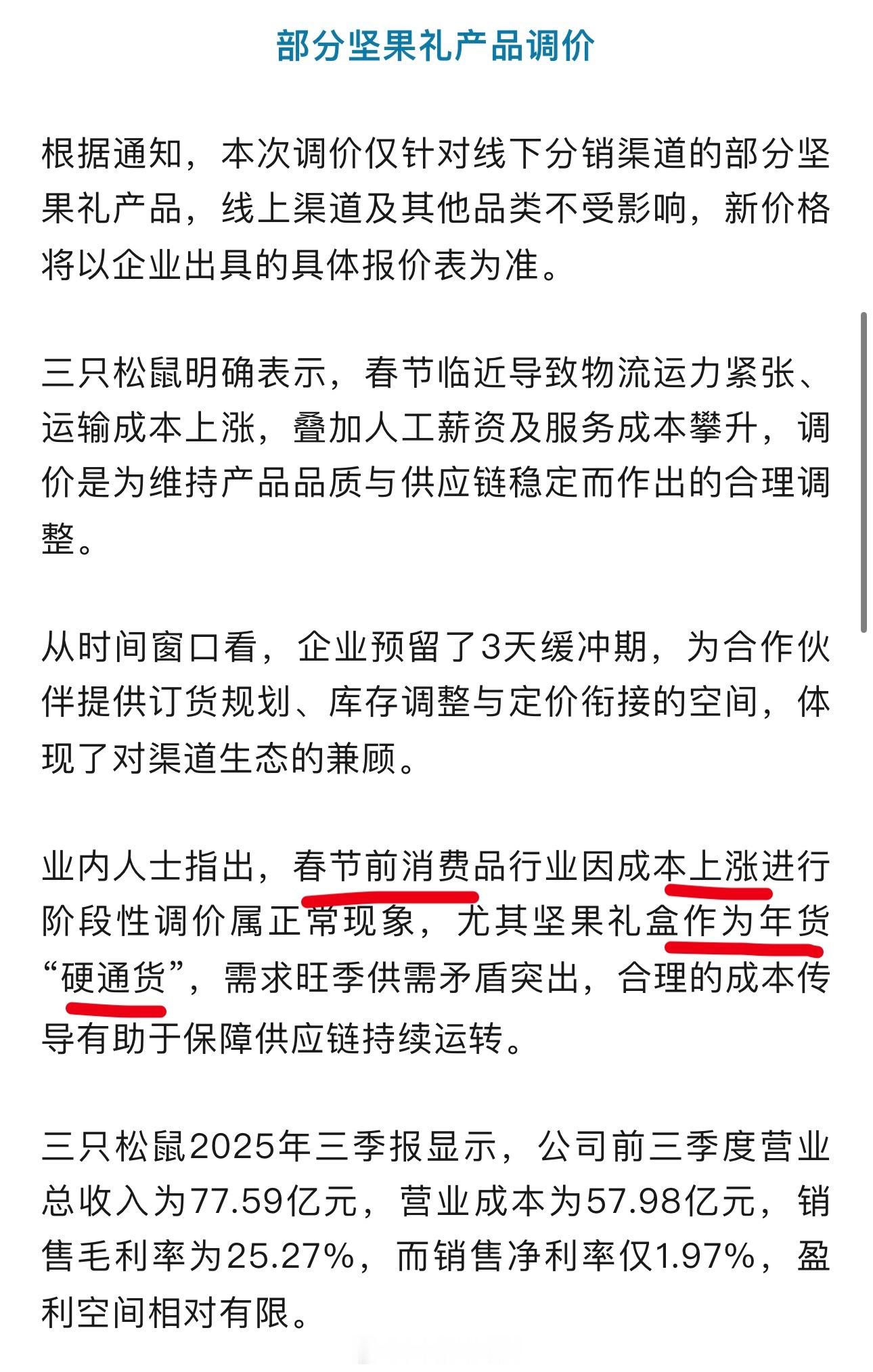 三只松鼠宣布提价