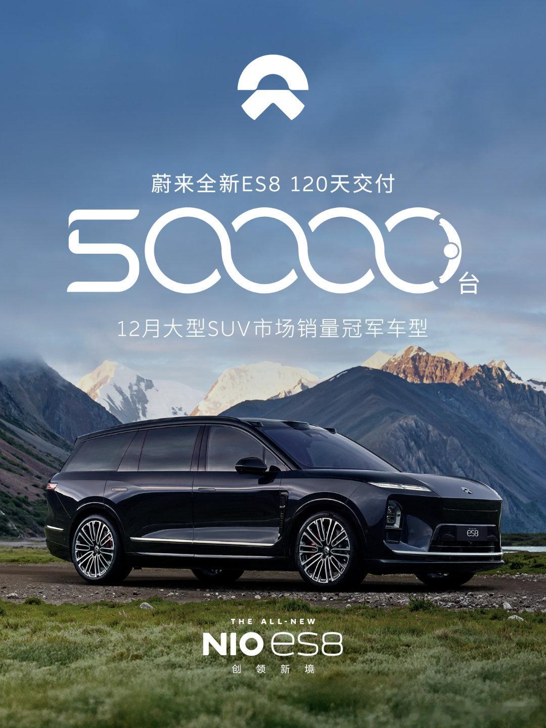 2026.01.18,蔚来全新 ES8 第五万台完成交付也就意味着,本月开始的交付正向十万开启冲刺(目标定高一点)大v聊车 根据事实来说,ES8依旧是市场上到今天为止售价非常非常「贵」的纯电同级别同样大车,横竖来说,都得加个油箱(当然这是给消费者的选择)