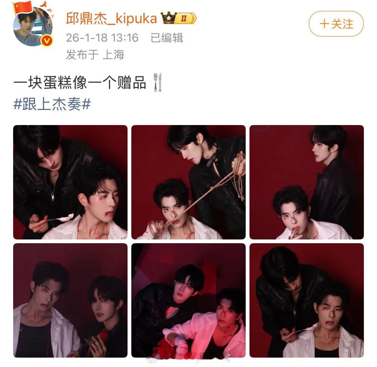 黄星、邱鼎杰各自晒双人营业照,配的文案也是太暧昧了