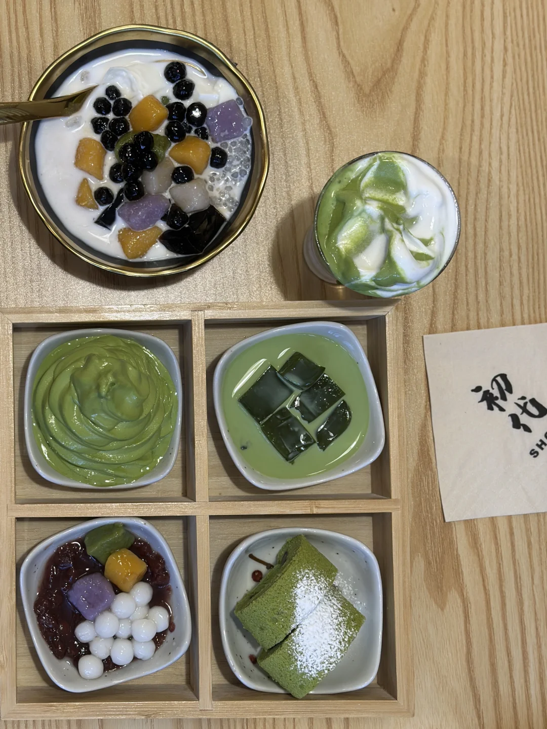 称霸巴黎的抹茶连锁店。抹茶千层竟然微苦,整一套好健康。