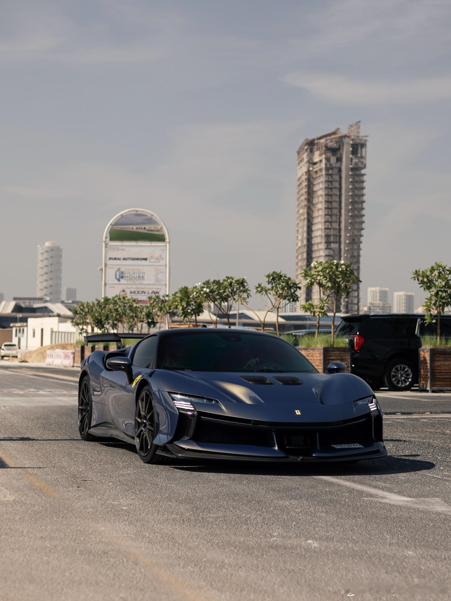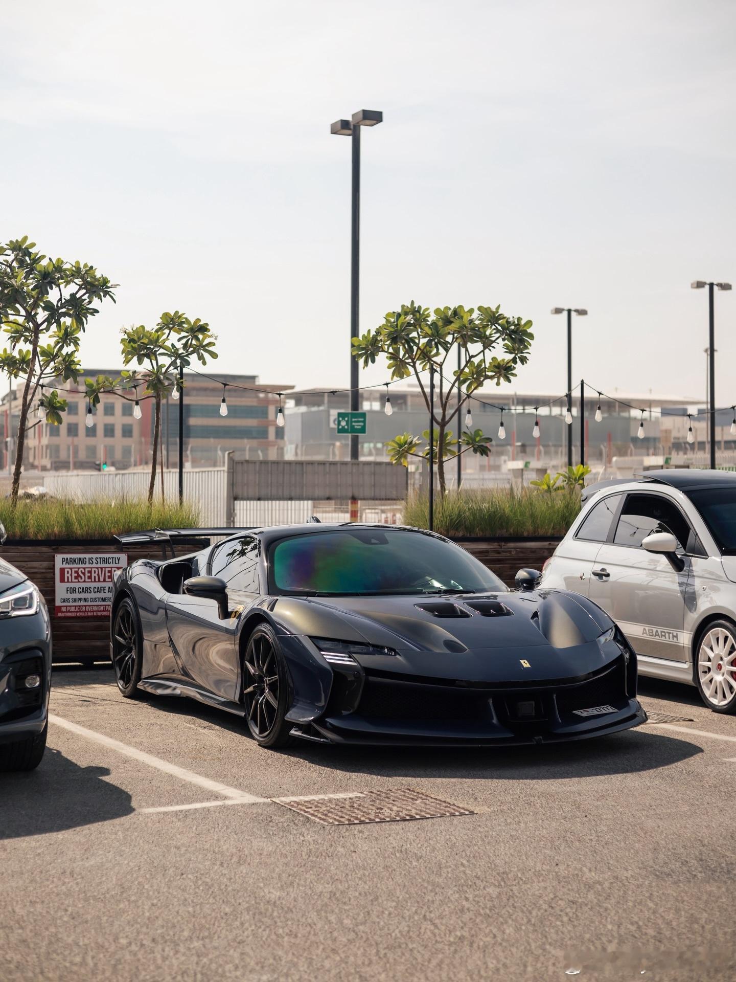 SF90XX 外观配色为Blu Minerale,一款在光照下呈现金色的绚丽珠光漆。可能是法拉利最出名的一种One-off配色如今名字发生了更改,我推断可能跟设计者的版权有关,也可能法拉利现在希望将颜色进行更系统的分类。外观方面选择了碳纤维轮毂和漆盾,内饰应该就是Nero Alcantara。交付于位于阿联酋迪拜的Al Tayer Motors。图片来自