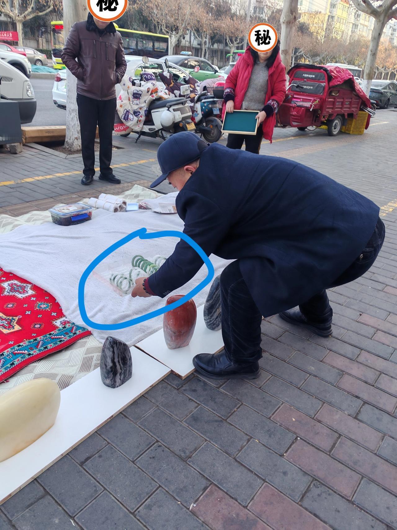 新疆玉有点玩不动了 1月18日,这是我前天在西安北郊街头拍到的两张图片,路边停放着一辆新A开头的面包车,来了一个玉器摊。 地上铺了两张白色塑料布,有人正从车里把一些玉器搬下来,住塑料布上摆放,前排全是玉雕(图1),有黄玉青玉白玉红玉等,玉色看着莹润。帽子大叔又取了一箱子手镯,轻轻地往地上放,见图2。 好奇心重的我凑上去看热闹,帽子叔见我手上带着个玉镯子,便建议我再买一个,说这是和田青玉。我不懂玉,手上戴的玉镯是婆婆给我的,说不上很喜欢,只是听说贵,戴着表示对她老人家的尊重。 不懂,我是不会买的,主要害怕当了冤大头,我想值钱的玉不会拿到路边摊卖吧?前面那排玉摆件还挺好看的,我问了价,8百至1万不等。 我观察了近十分钟,大部分路人只是瞅几眼便匆匆离去,或者像我这样看热闹的人,但没人掏腰包,有些人甚至路过略过,压根没兴趣。 盛世文玩,现在对这些感兴趣的人好像并不多,黄金有价玉无价,玉不像黄金那样保值,可能人们在购买的时候会更理性了。