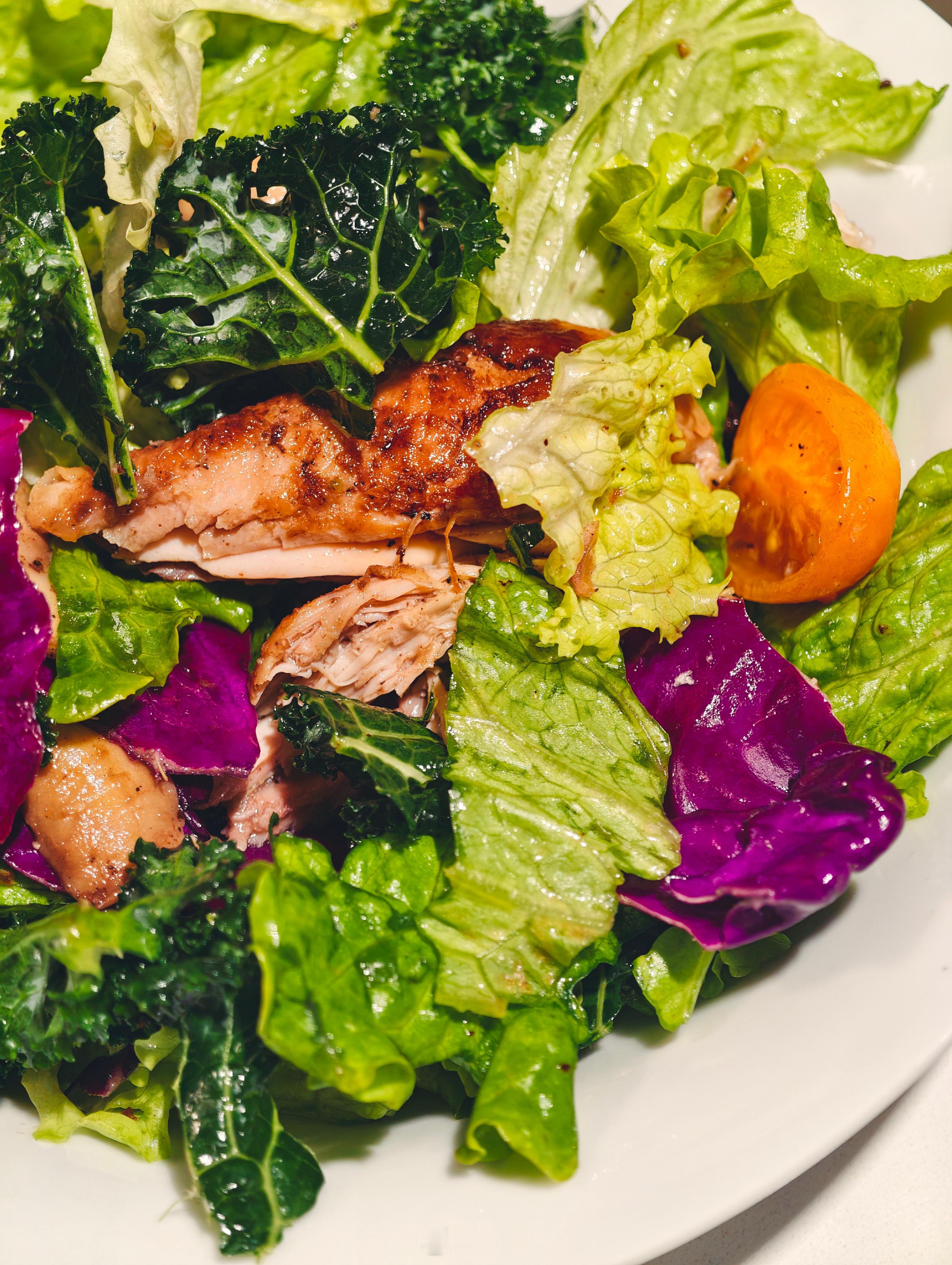 发现冰箱里的法棍状态不好,广快弄一份鸡腿肉沙拉败败火🥗配上自制的苹果油醋汁,味