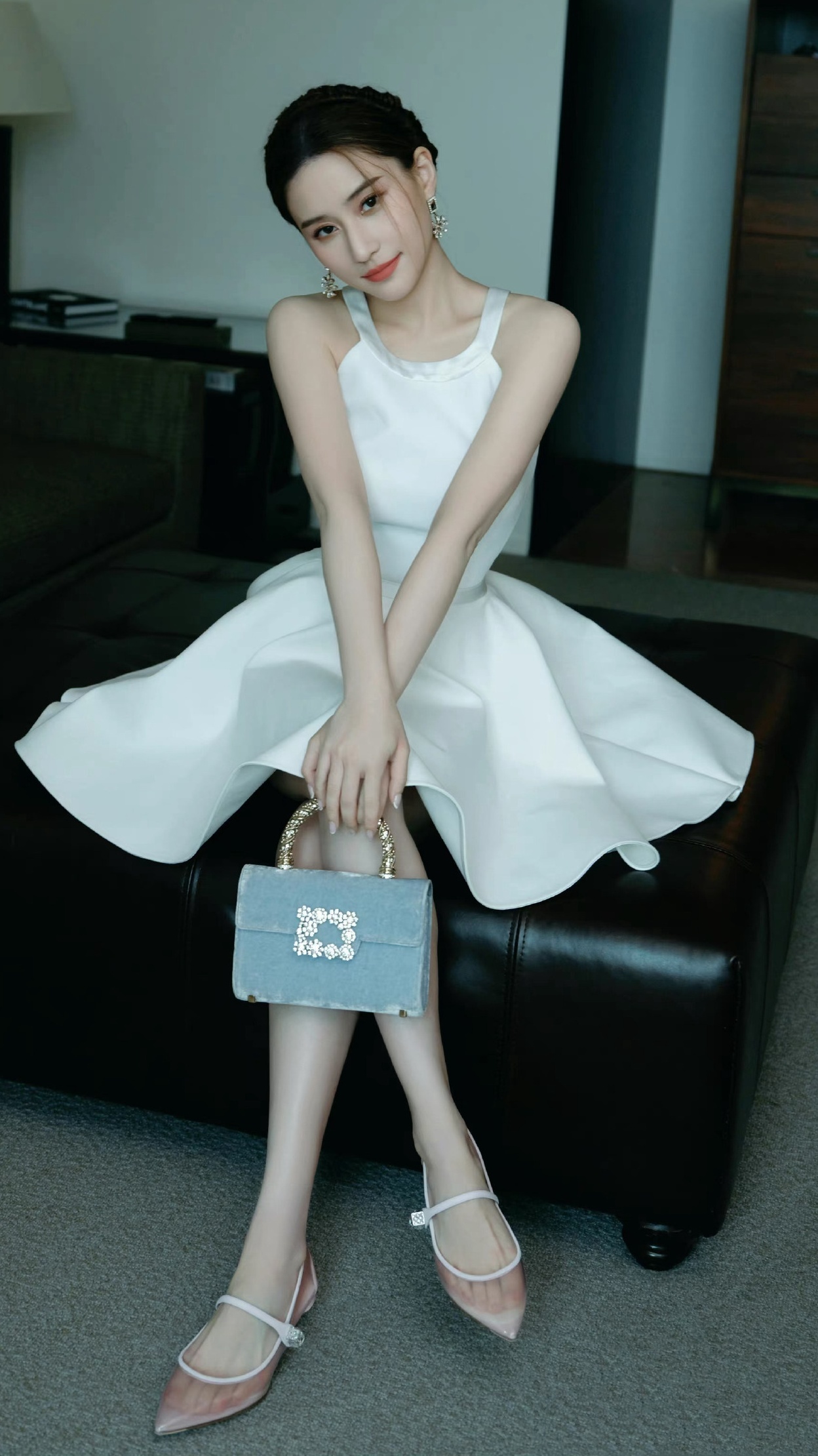 何超莲,白裙美腿,优雅中透着青春气息。何超莲
