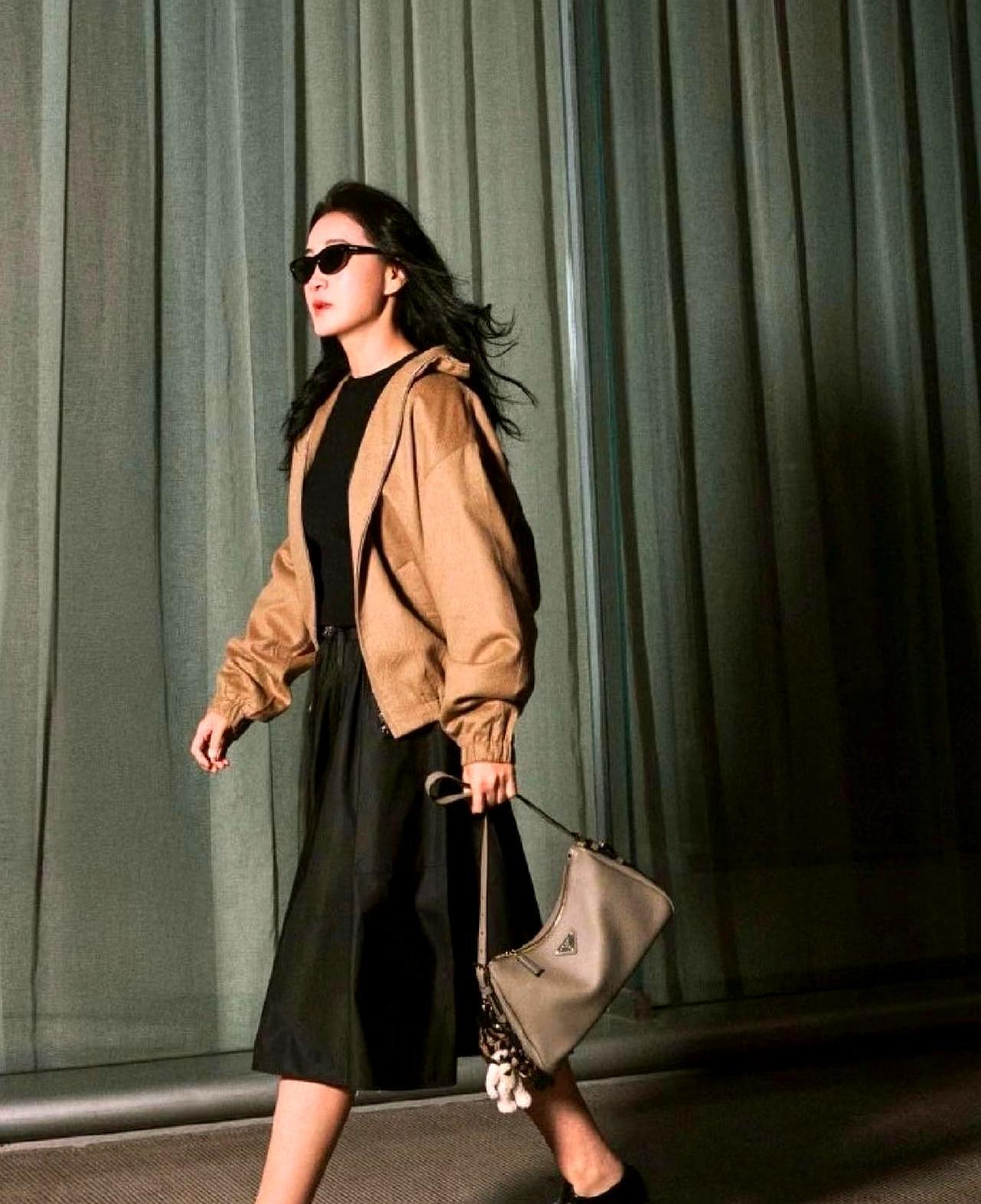 100斤后她首次露面! 机场灰色大衣,渔夫帽压得很低,下颌线像刀切。网友刷图