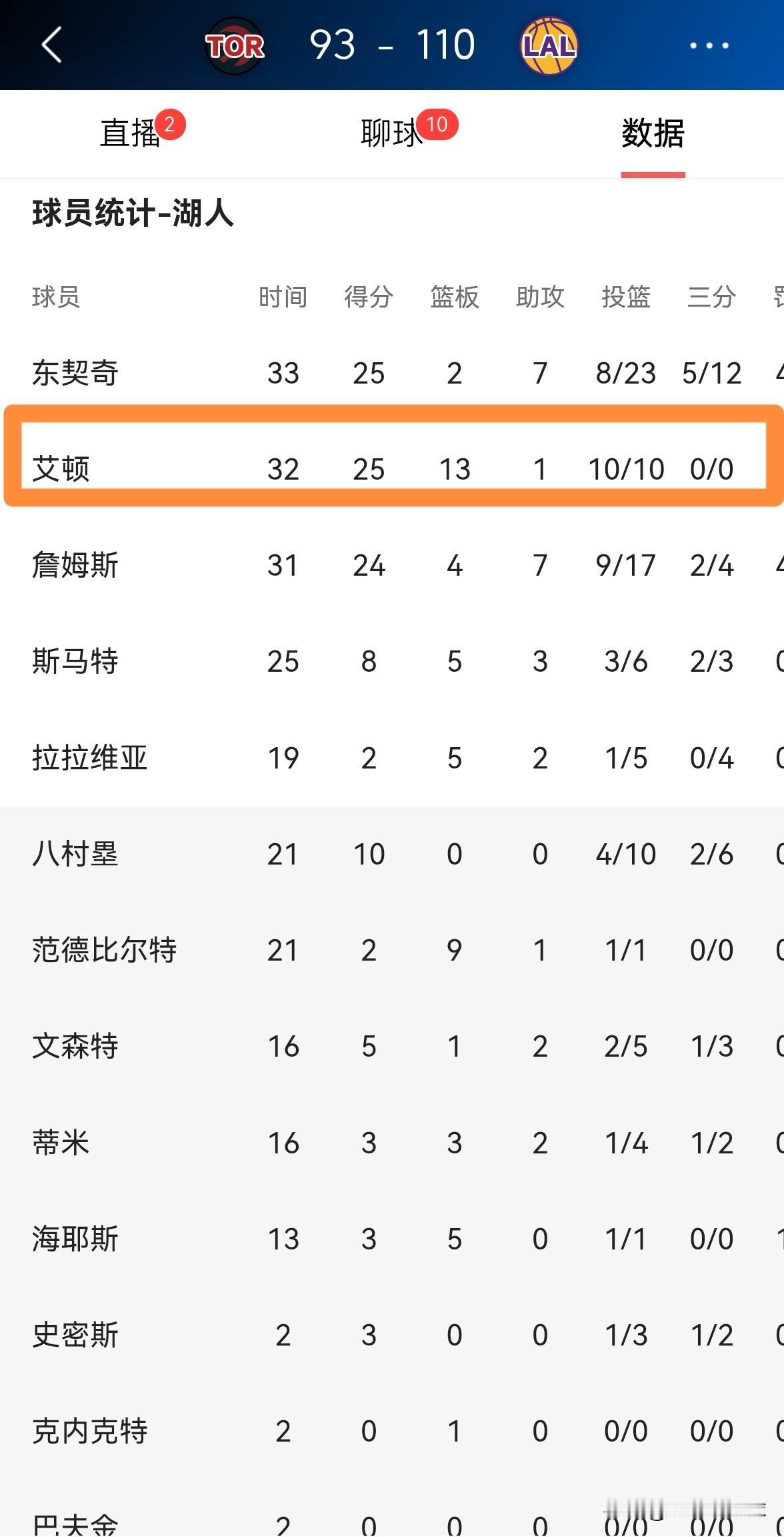 湖人当家中锋艾顿真是众望所归!在今天湖人主场以110:93大胜猛龙的赛后,湖人官