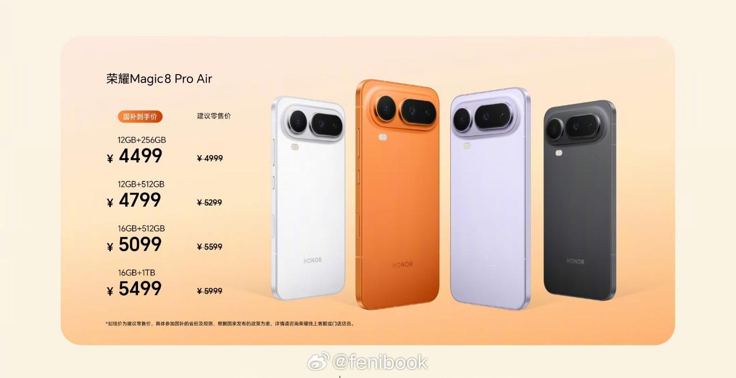 怎么样,我牛逼吧,很早都猜对了,荣耀Magic 8 Pro Air,国补后4499起,这价格也太牛逼了