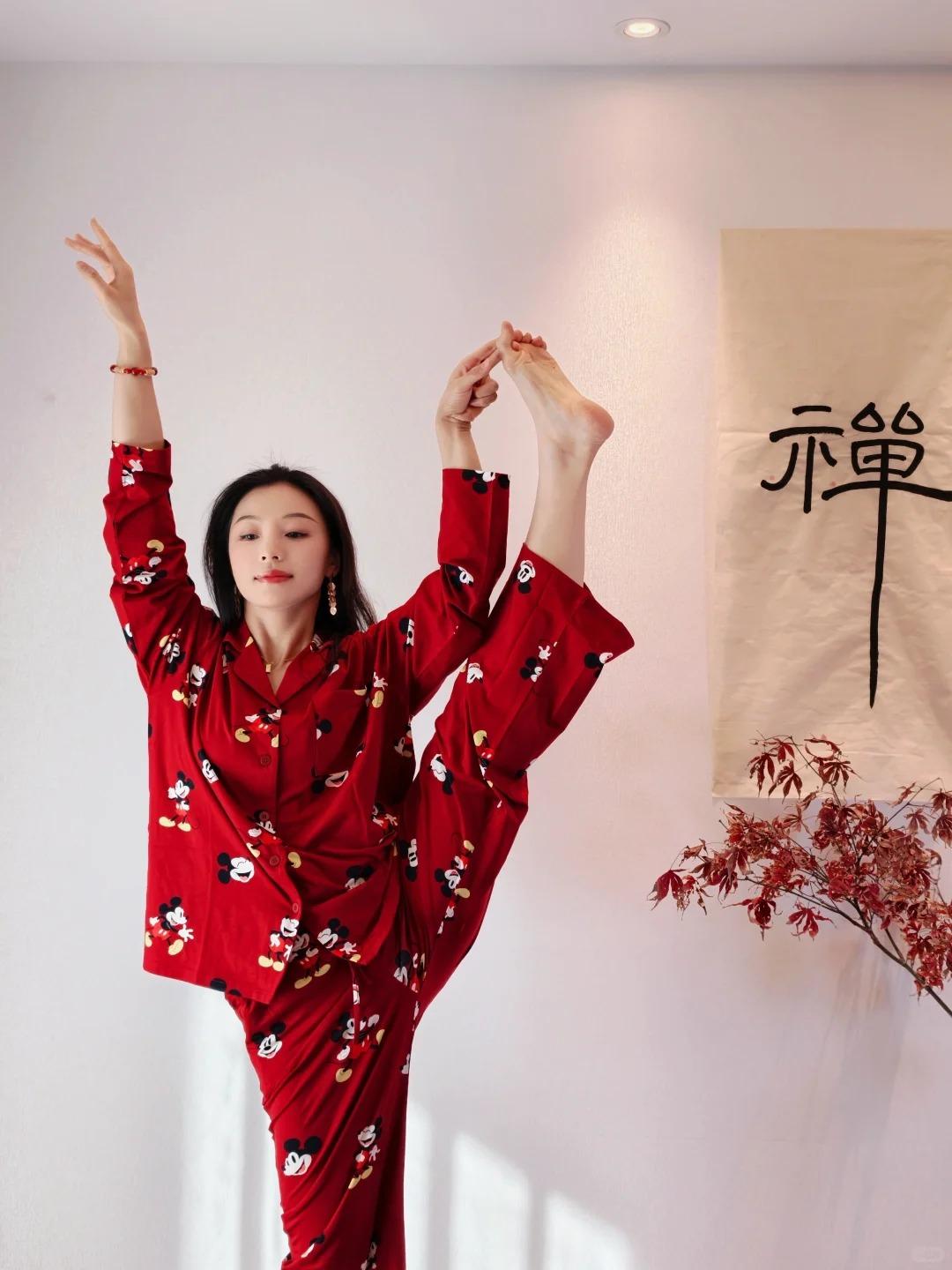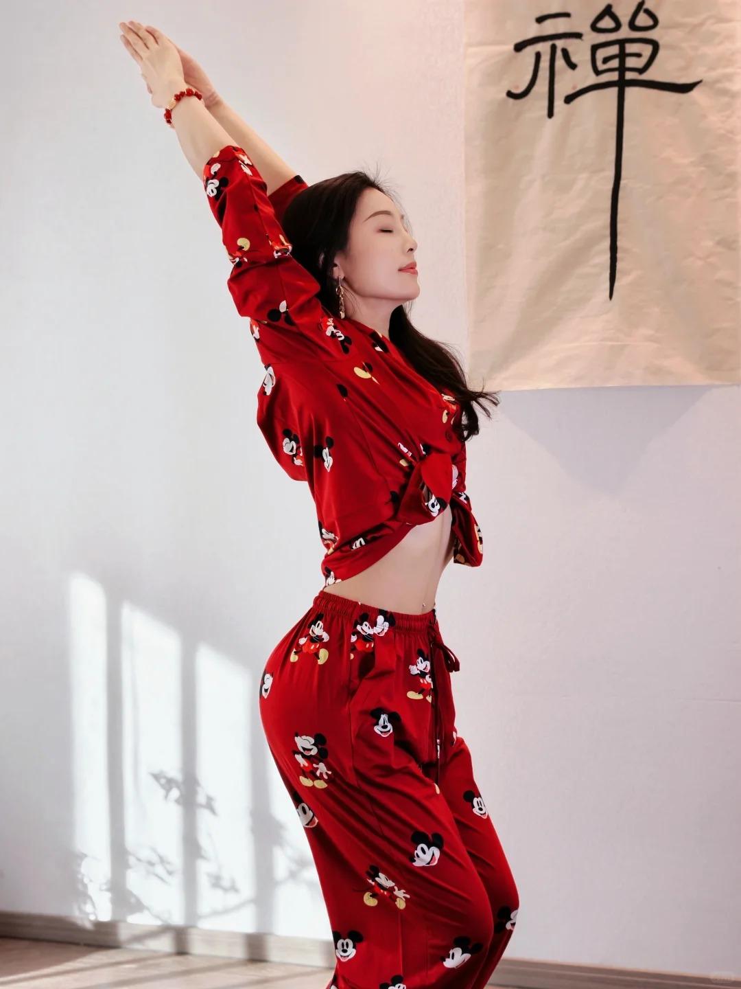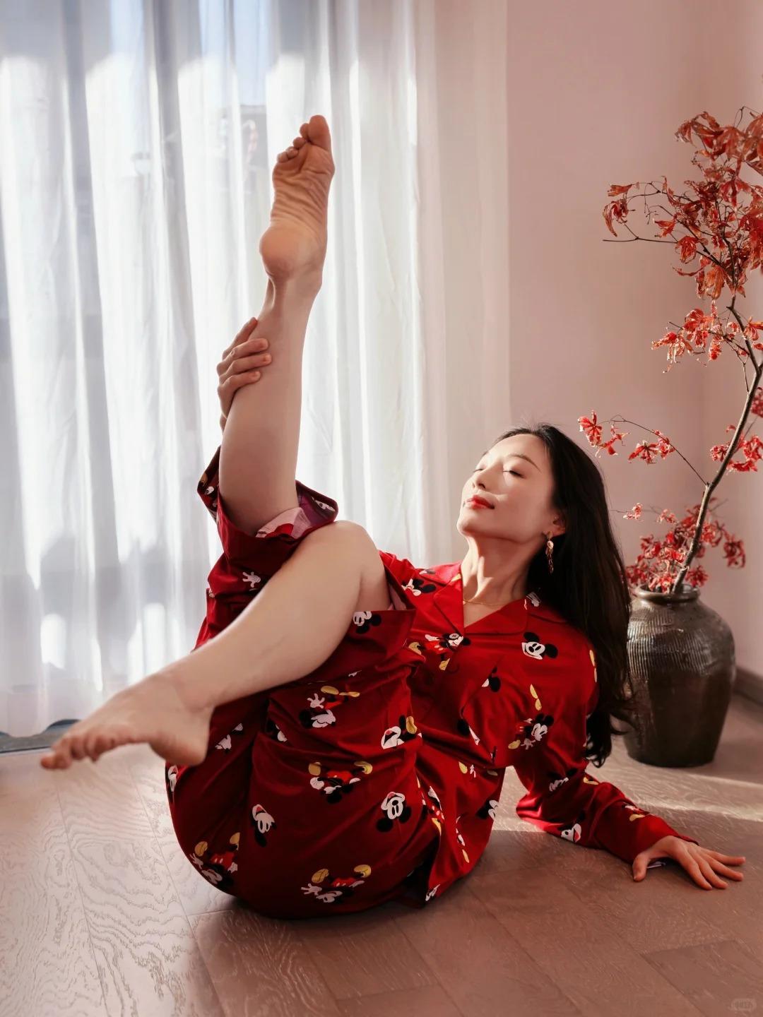 晒图笔记大赛翻出这套压箱底的睡衣时愣了愣——居然是这般红红火火的款式,像裹着一团小太阳。原本只是想随便拉伸舒展下身体,换上它倒多了几分仪式感。柔软的面料不束缚动作,猫在客厅的暖阳里,慢慢完成一组体式,呼吸跟着节奏放缓,紧绷的肩颈都舒展了不少。热烈的红色好像自带元气Buff,练完浑身暖洋洋的。不追求标准动作,只和自己的身体和解,穿着喜欢的睡衣,做着治愈的事,这便是寻常日子里的小满足呀。睡衣美女人像群瑜伽魅力红色