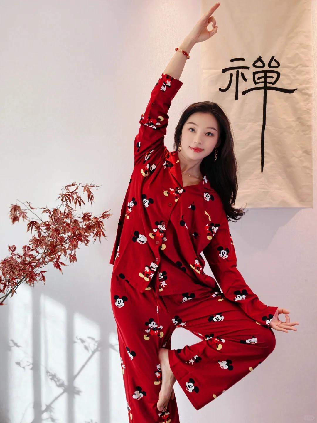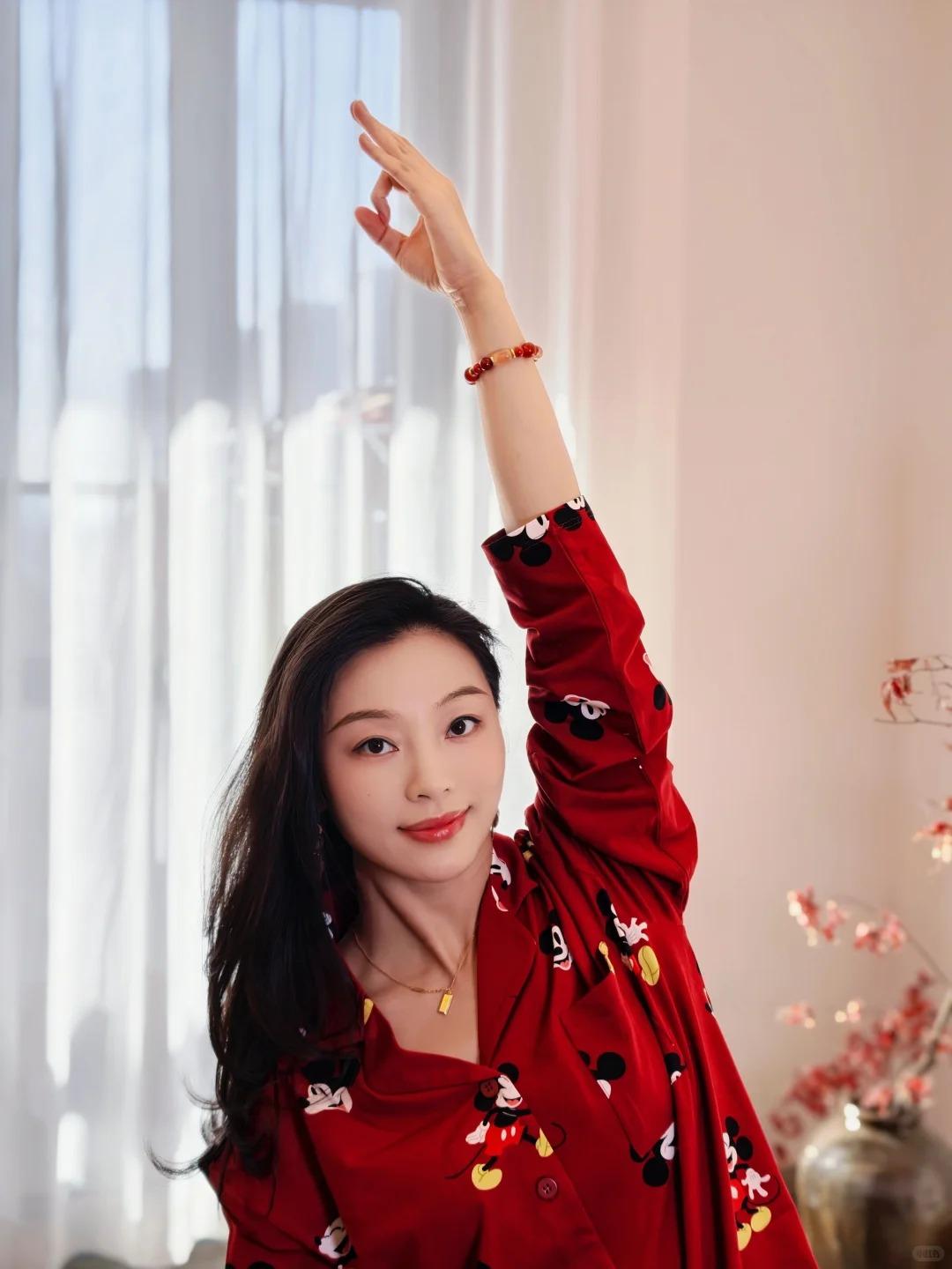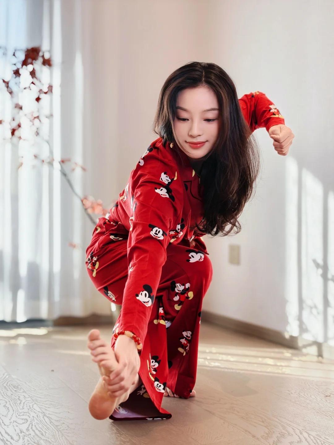 晒图笔记大赛翻出这套压箱底的睡衣时愣了愣——居然是这般红红火火的款式,像裹着一团小太阳。原本只是想随便拉伸舒展下身体,换上它倒多了几分仪式感。柔软的面料不束缚动作,猫在客厅的暖阳里,慢慢完成一组体式,呼吸跟着节奏放缓,紧绷的肩颈都舒展了不少。热烈的红色好像自带元气Buff,练完浑身暖洋洋的。不追求标准动作,只和自己的身体和解,穿着喜欢的睡衣,做着治愈的事,这便是寻常日子里的小满足呀。睡衣美女人像群瑜伽魅力红色