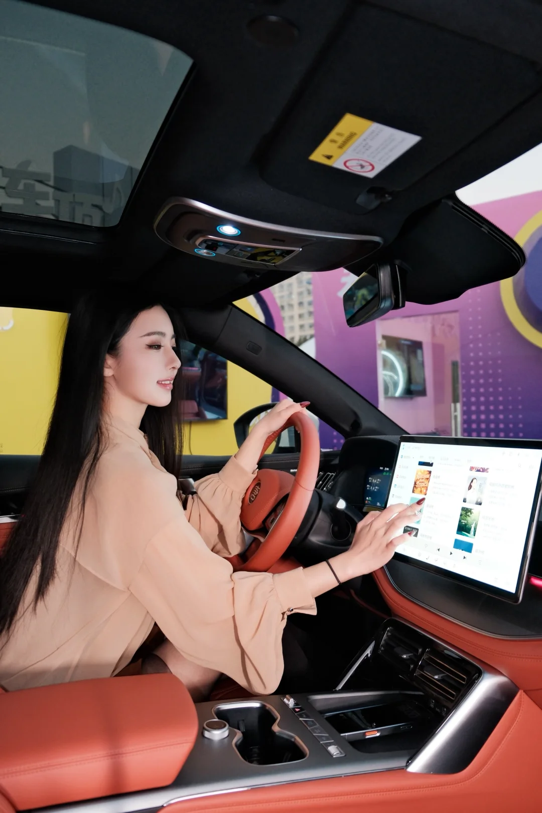 七大漫游点位,藏着无数值得奔赴的惊喜:「出片大厂」用车机调用影石相机,快门落下即是创意;AI复刻机的甜酷特效,扫码导出便成了专属头像。「音浪燥热场」的无麦K歌,四音区拾音与全景环绕音效,让车厢化作移动音乐厅,歌声通透,氛围感拉满。「超能穿梭站」的电动滑板,风穿过衣摆的自在,与车机联动的续航数据,让科技感在实用细节里落地。
