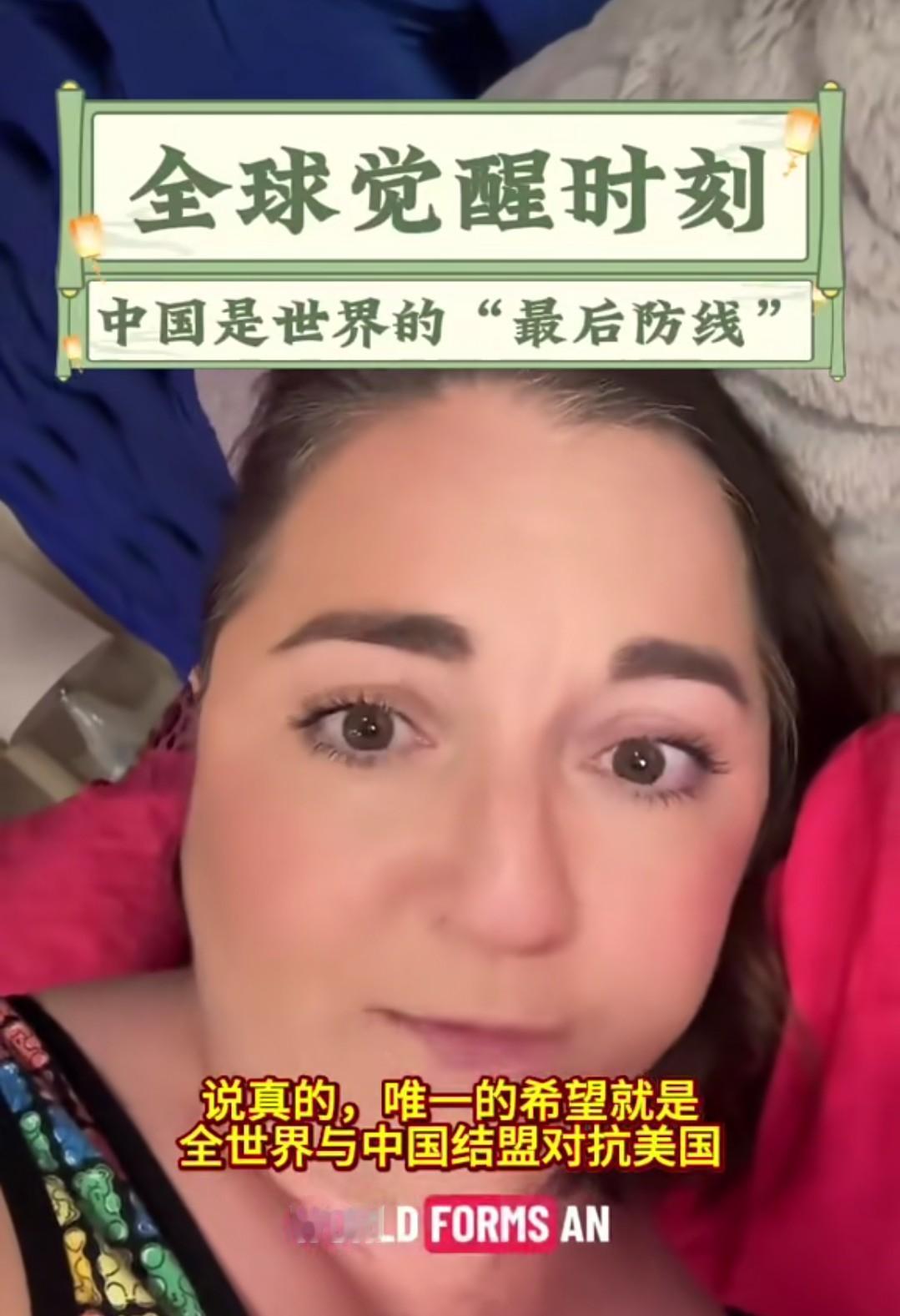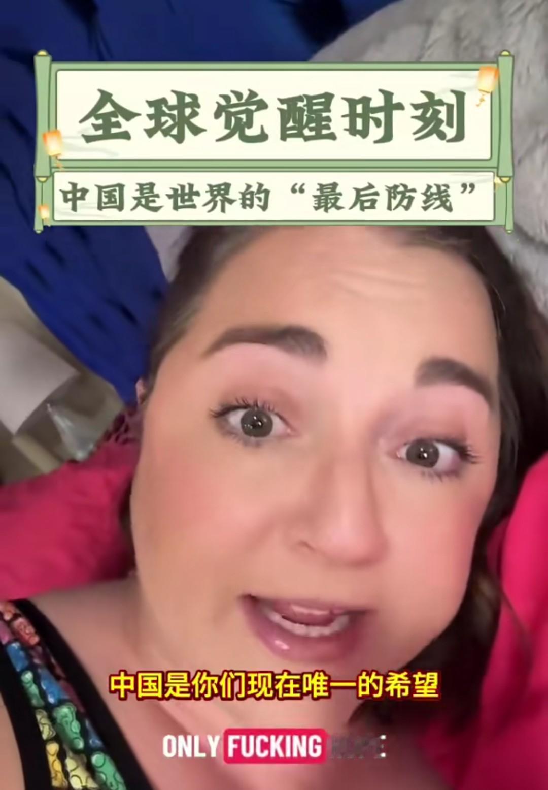 “自有大儒为我辩经!”这句话的的含金量在上升啊。 看看这个外国小姐姐说的:“中国是全世界最后的防线。”“中国是唯一的希望。”“全世界与中国结盟对抗美国。” 还说现有的国际规则,得到的是虚假的安全感。