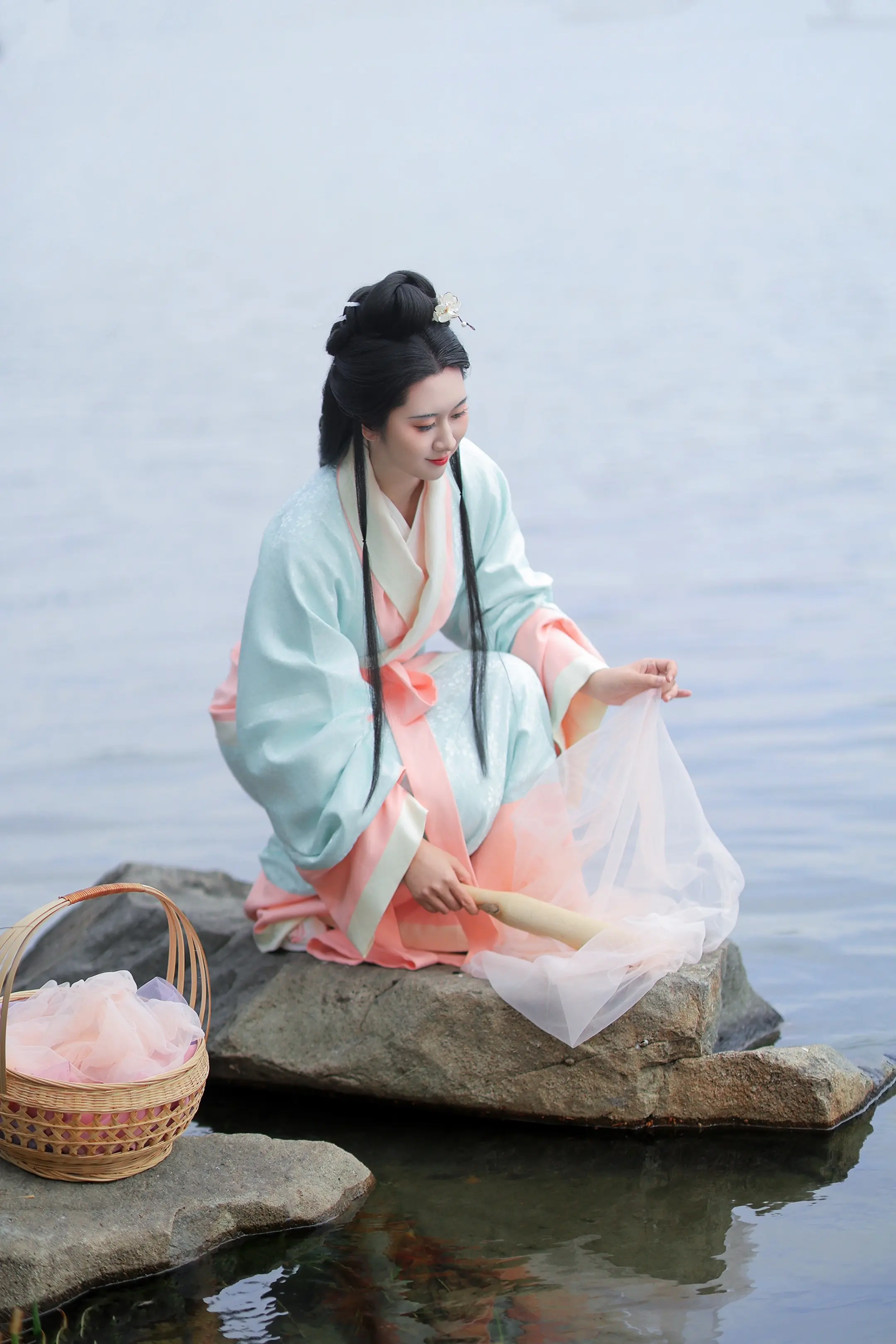西施浣纱图。给客妹拍的西施。一整个温柔住了~特意跑到越王城遗址去拍的...